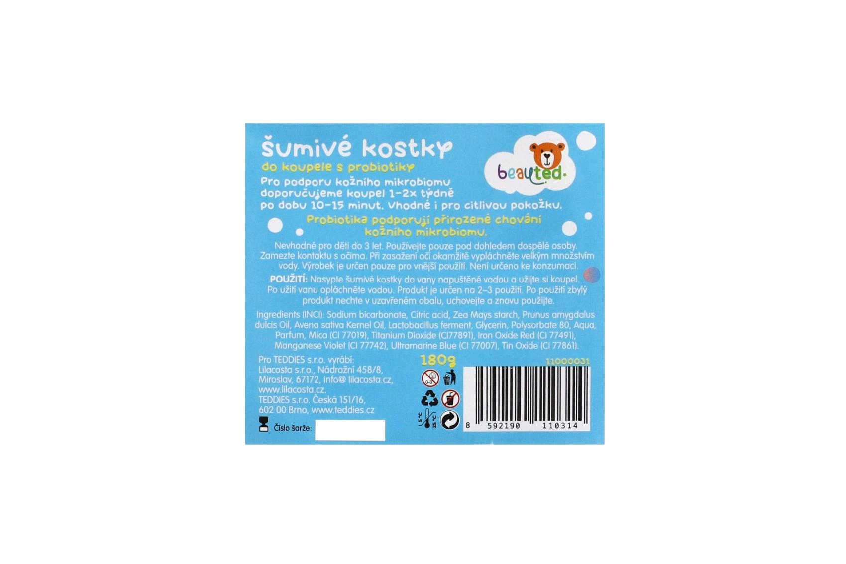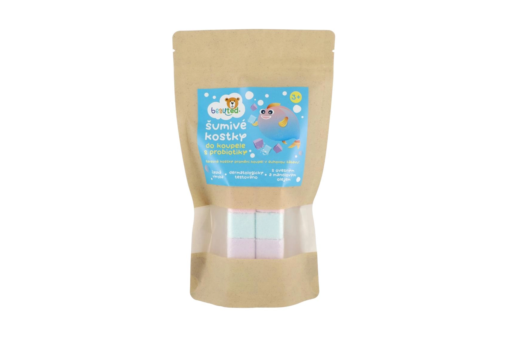 Pārvērtiet vannu krāsainā piedzīvojumā. Šķīstošie vannas kubiņi ar probiotiķiem nodrošina gan izklaidi, gan maigu kopšanu bērna ādai. Tie satur probiotiķus, kas atbalsta ādas dabisko aizsargspēju, ir bagātināti ar jūras sāls minerāliem, auzu ekstraktu un mandeļu eļļu. Dermatoloģiski testēts, saudzīgs bērniem. Praktiskais atkārtoti aizveramais maisiņš saglabā svaigumu un atvieglo dozēšanu.