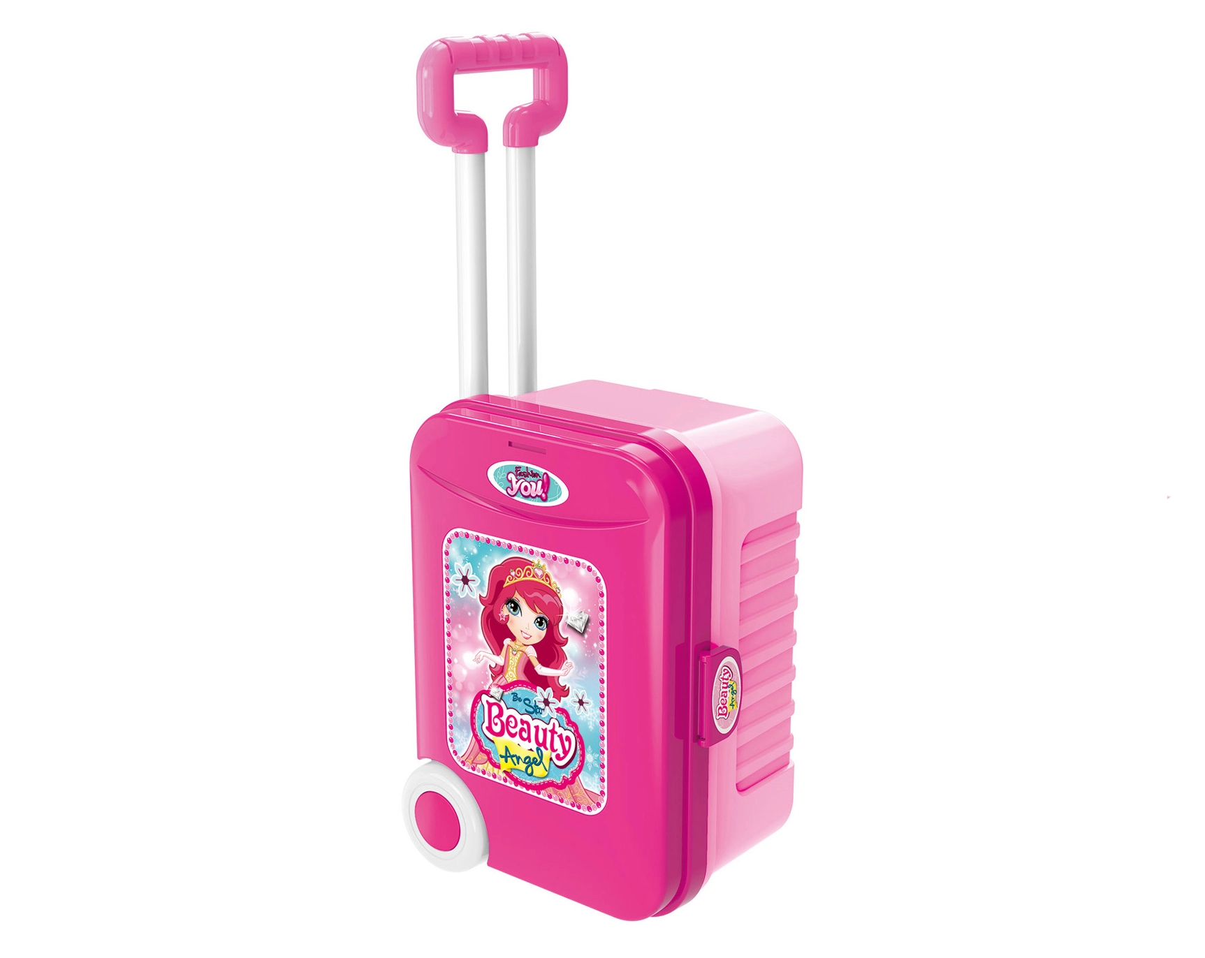 Šis rozā kosmētikas komplekts ir ideāls mazajām dāmām, kurām patīk fantāzijas rotaļas. Praktisko koferīti ar riteņiem un teleskopisko rokturi var viegli pārvērst stabilā kosmētikas galdiņā ar integrētu spoguli. Tas vienlaikus nodrošina pietiekami daudz vietas visu piederumu glabāšanai.