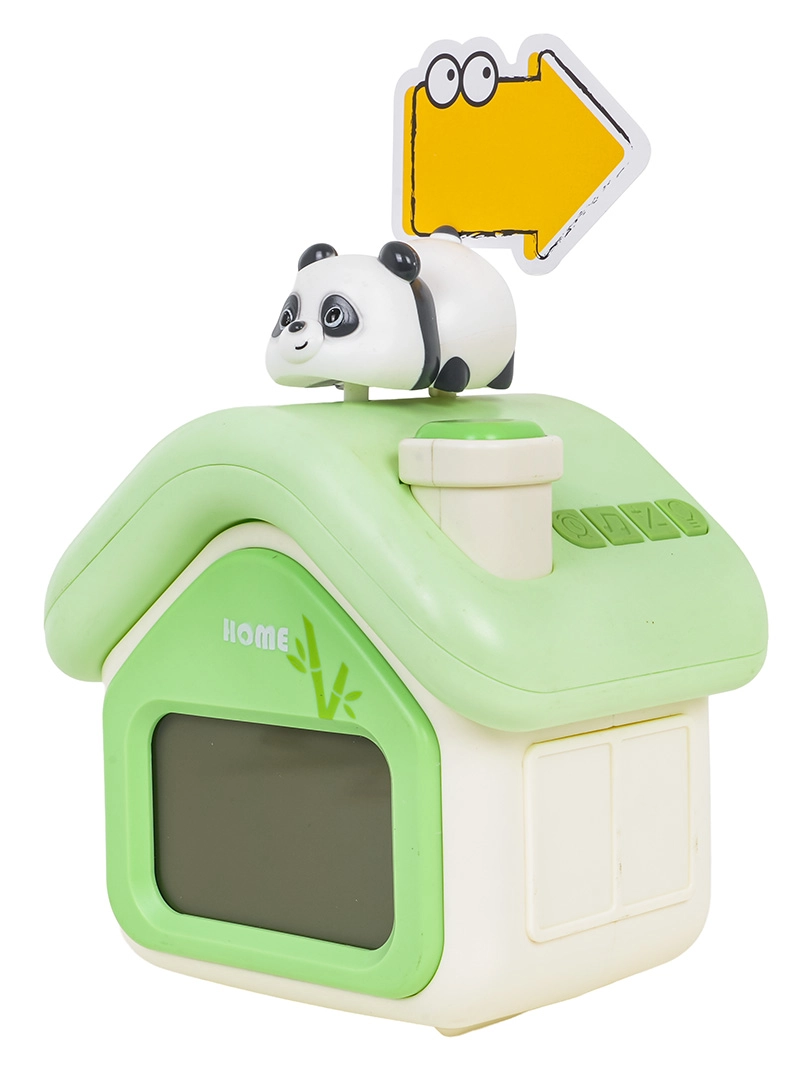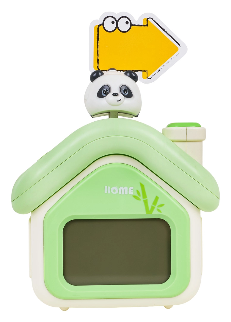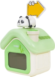 Mīlīgs bērnu modinātājs mājiņas formā ar pandu apvieno skaidru digitālo attēlojumu, klusu darbību, nakts gaismu un modinātāju ar snaudas funkciju. Tas piedāvā arī temperatūras mērīšanu, taimeri un akumulatora indikātoru. Pateicoties lielas ietilpības akumulatoram ar USB‑C uzlādi, tas ir ideāli piemērots bērniem no 3 gadu vecuma un lieliski papildina jebkuru bērnu istabu.