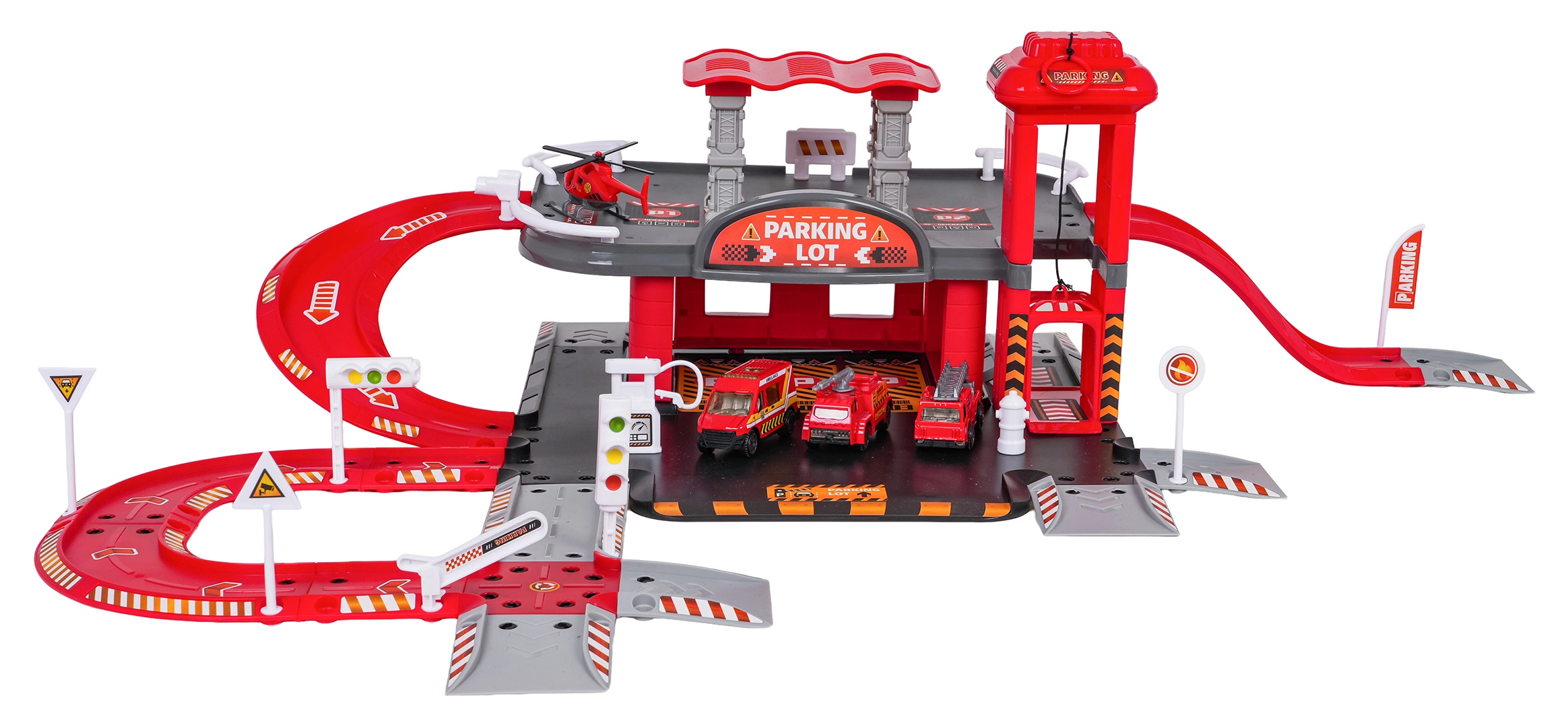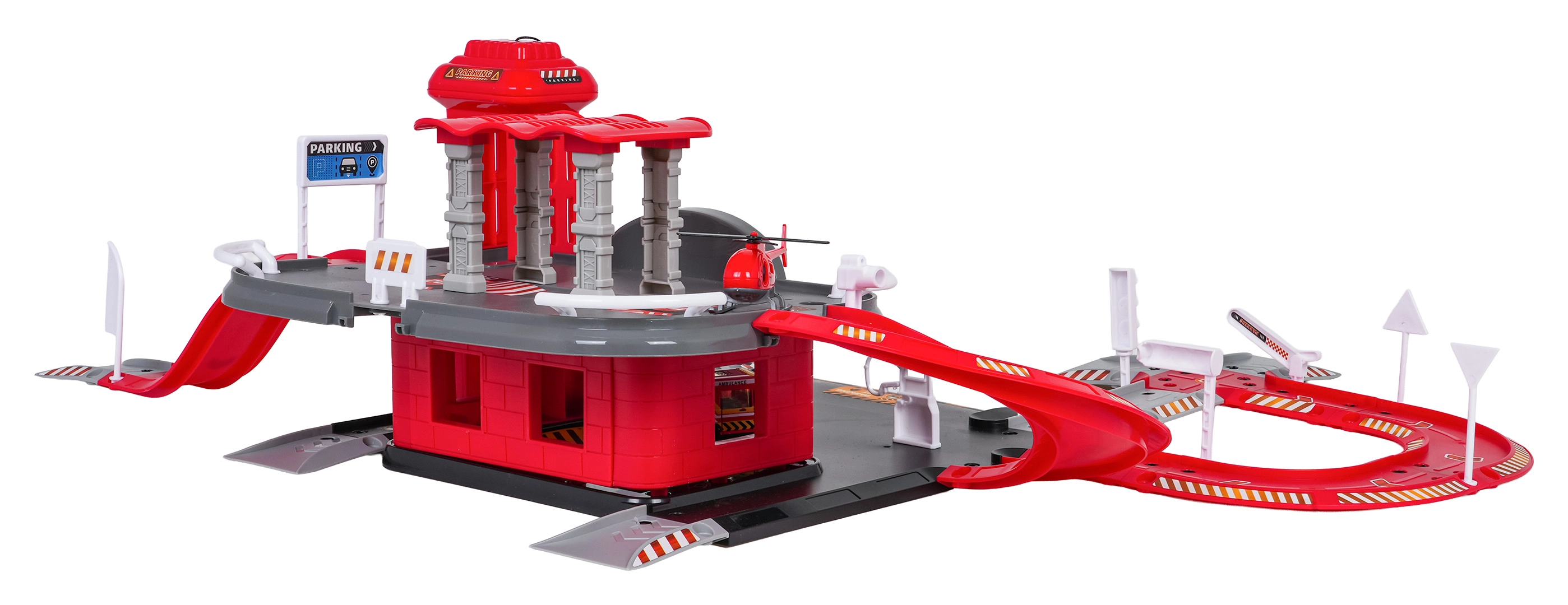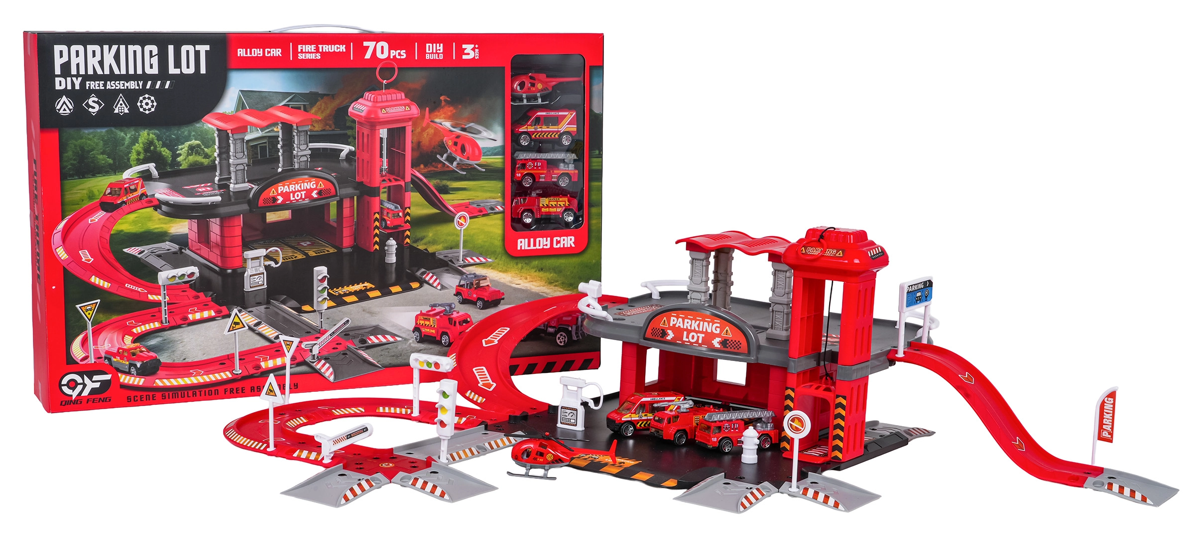 Šis rūpīgi izstrādātais ugunsdzēsēju stacijas komplekts apvieno izklaidi un prasmju attīstību. Bērni var uzpildīt degvielu degvielas uzpildes stacijā, braukt pa ceļu, pacelt auto ar manuālo liftu uz stāvu un novietot to paredzētajās stāvvietās. No augšējā stāva transportlīdzekļi atgriežas ar liftu vai traucas lejup pa spirālveida rampu.