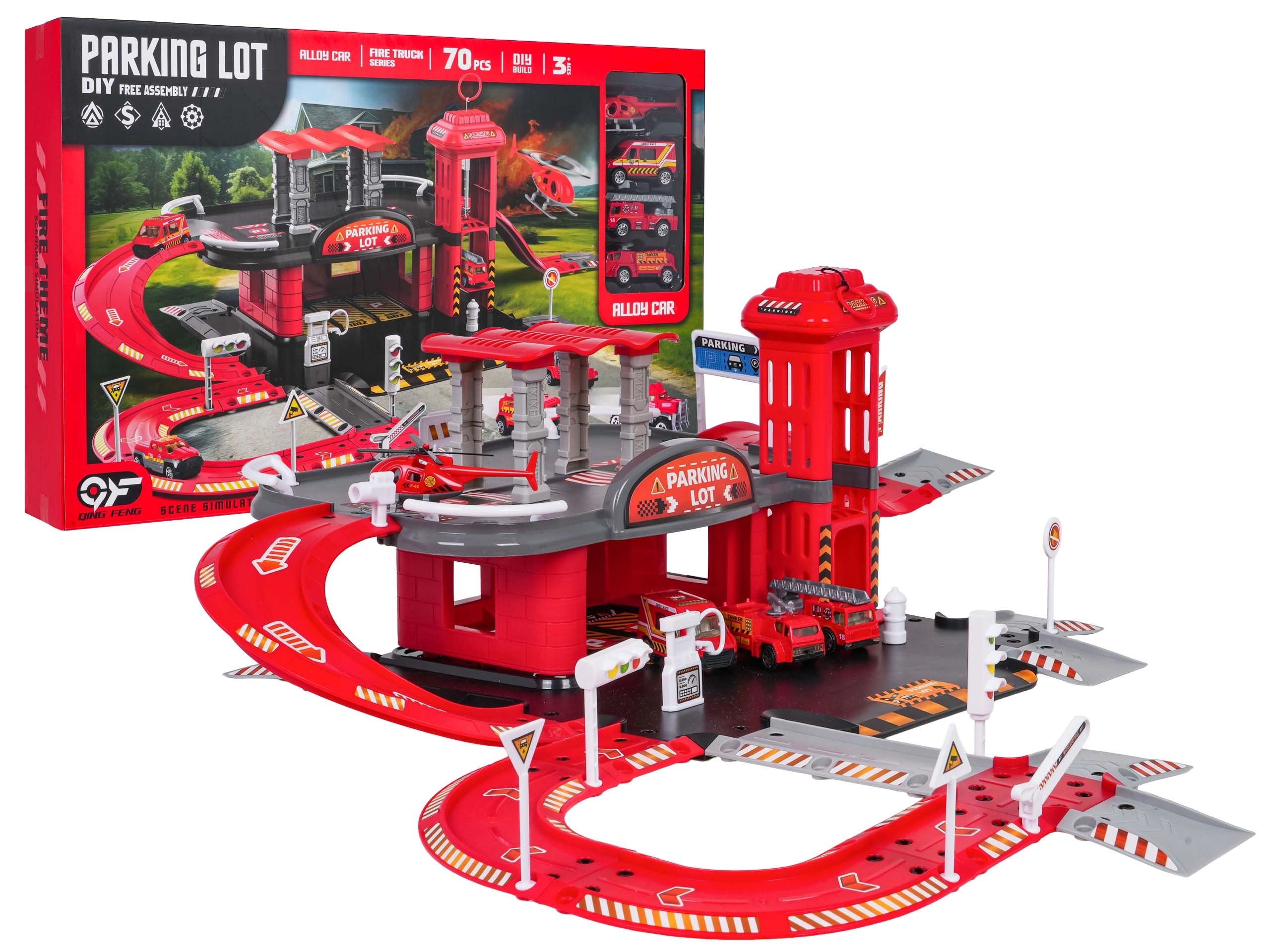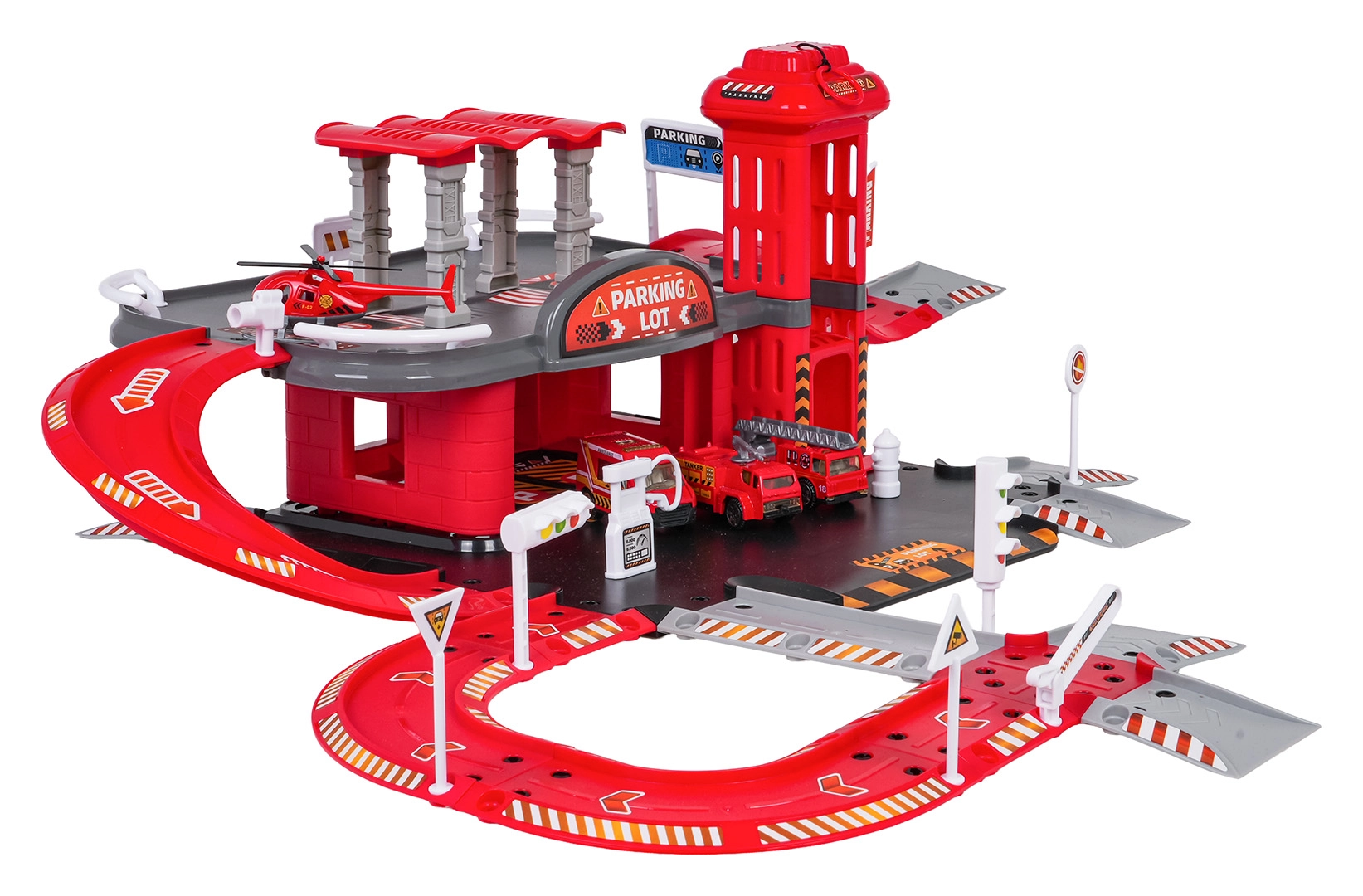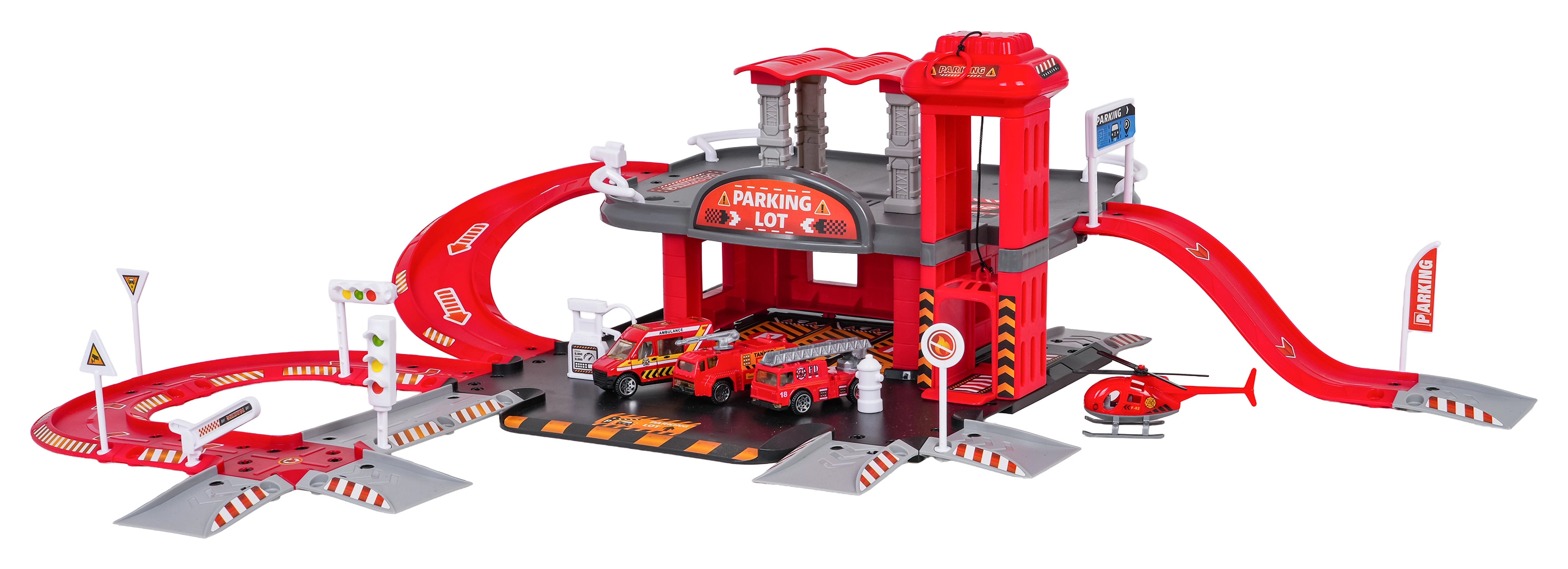 Šis rūpīgi izstrādātais ugunsdzēsēju stacijas komplekts apvieno izklaidi un prasmju attīstību. Bērni var uzpildīt degvielu degvielas uzpildes stacijā, braukt pa ceļu, pacelt auto ar manuālo liftu uz stāvu un novietot to paredzētajās stāvvietās. No augšējā stāva transportlīdzekļi atgriežas ar liftu vai traucas lejup pa spirālveida rampu.