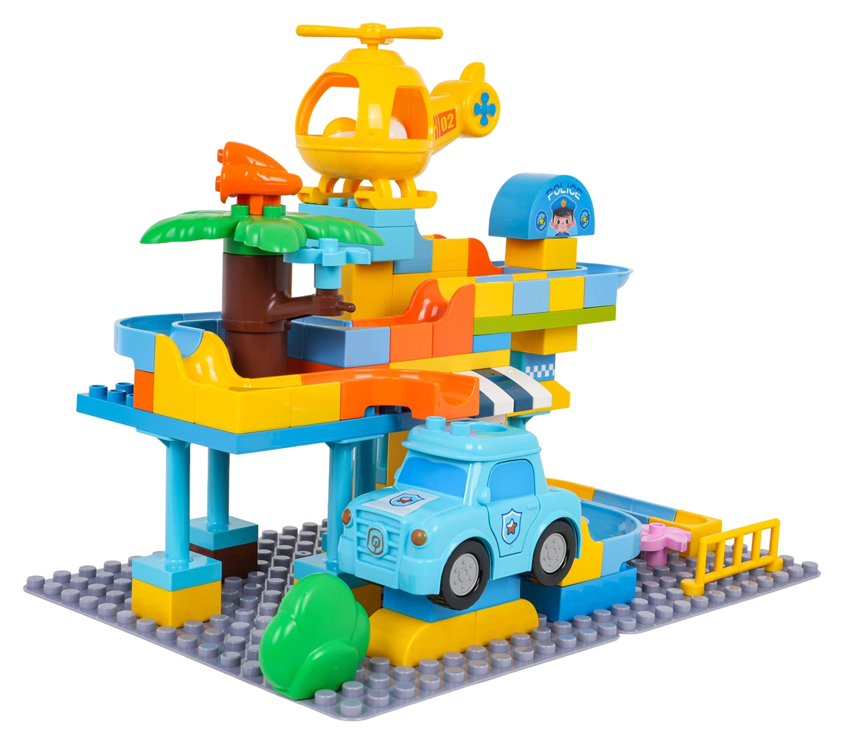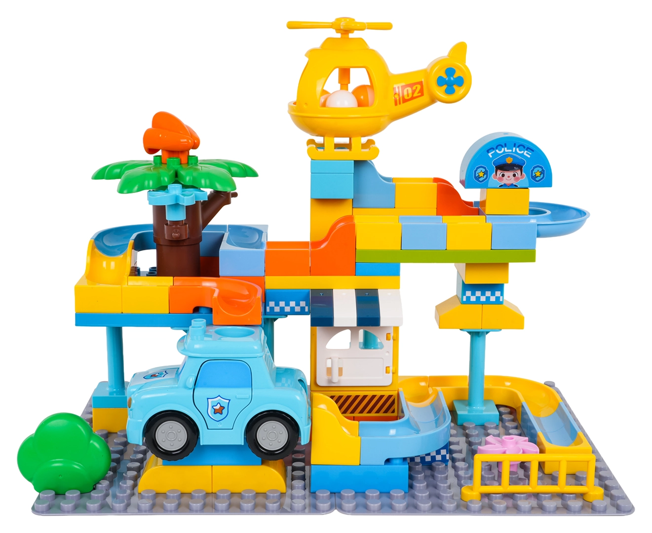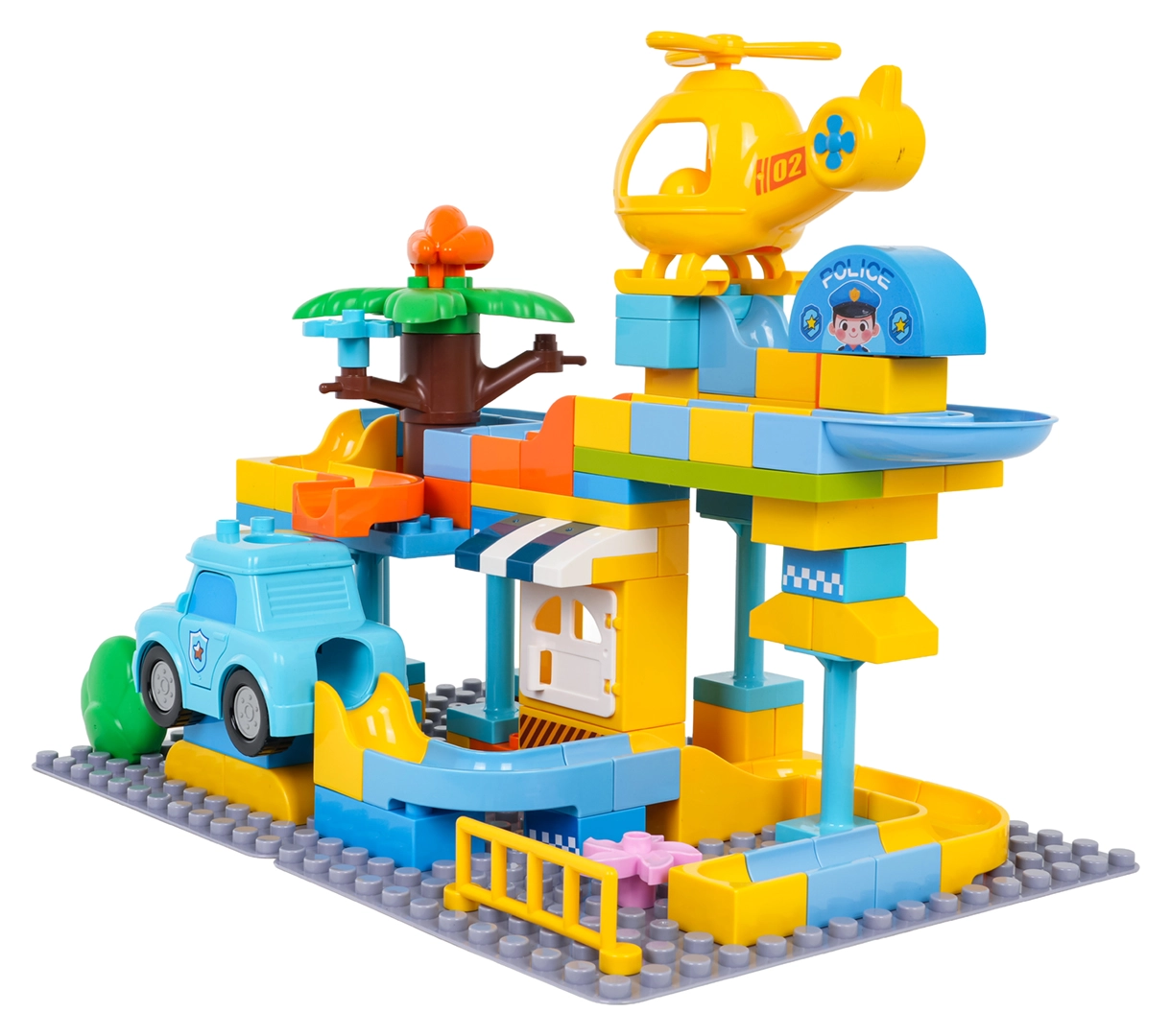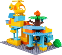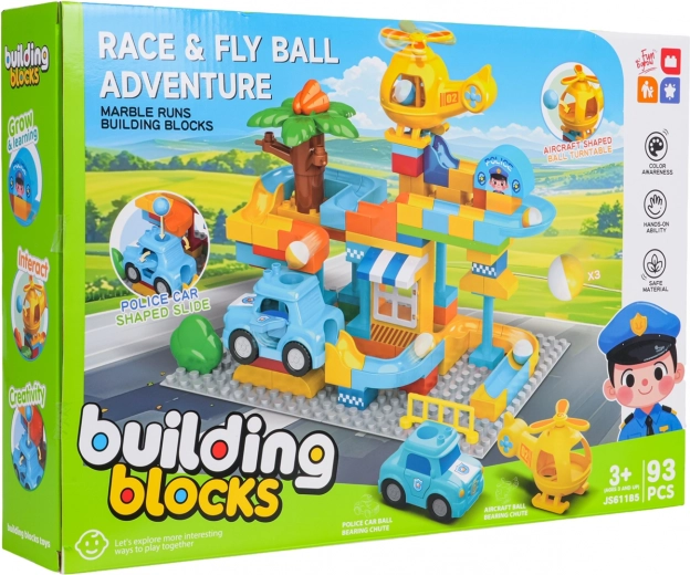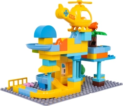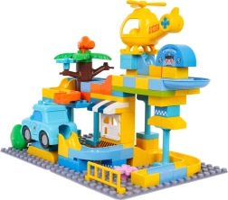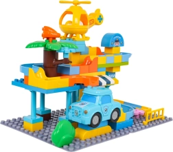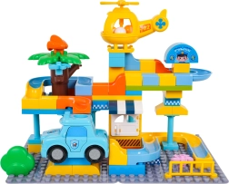 Krāsains policijas stacijas būvkomplekts bērniem no 3 gadu vecuma sniedz radošu izklaidi ar vienkāršu klucīšu savienošanu un stabilu konstrukciju. Komplektā iekļauta policijas mašīnīte, dzeltena helikoptera rotaļlieta, jautrs slidkalniņš un 3 bumbiņas, kuras var lidot cauri gan mašīnai, gan helikopteram. Ideāli piemērots iztēles, motorikas un radošuma attīstībai.