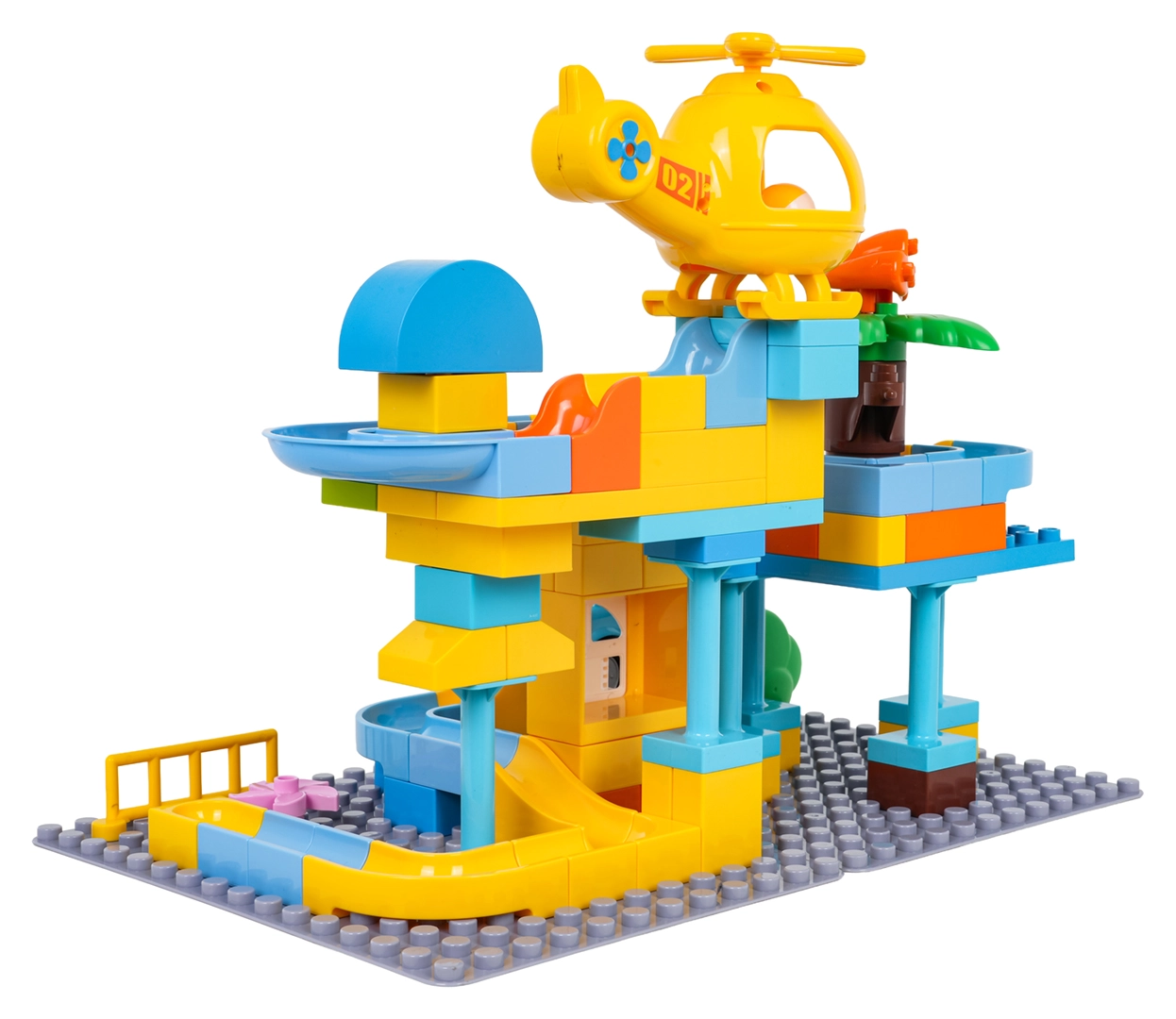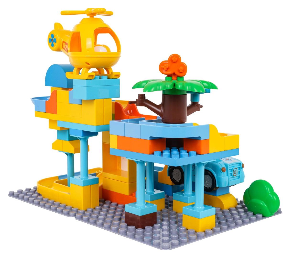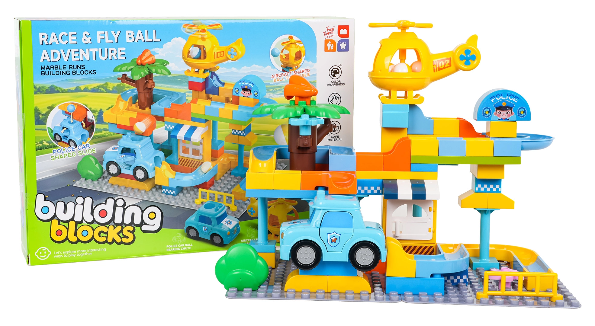 Krāsains policijas stacijas būvkomplekts bērniem no 3 gadu vecuma sniedz radošu izklaidi ar vienkāršu klucīšu savienošanu un stabilu konstrukciju. Komplektā iekļauta policijas mašīnīte, dzeltena helikoptera rotaļlieta, jautrs slidkalniņš un 3 bumbiņas, kuras var lidot cauri gan mašīnai, gan helikopteram. Ideāli piemērots iztēles, motorikas un radošuma attīstībai.