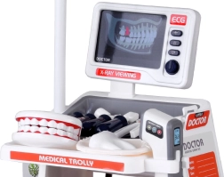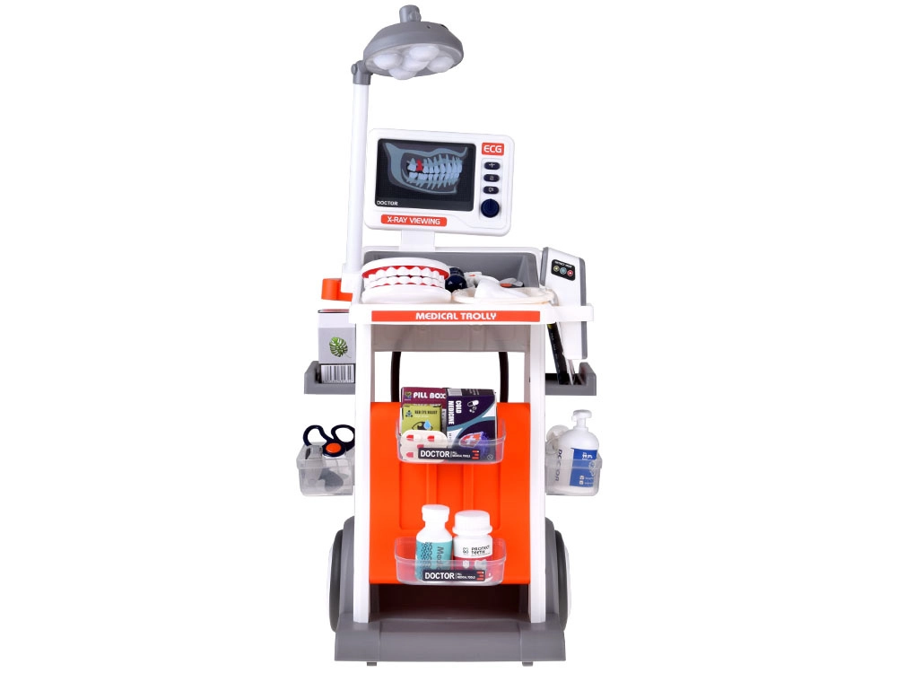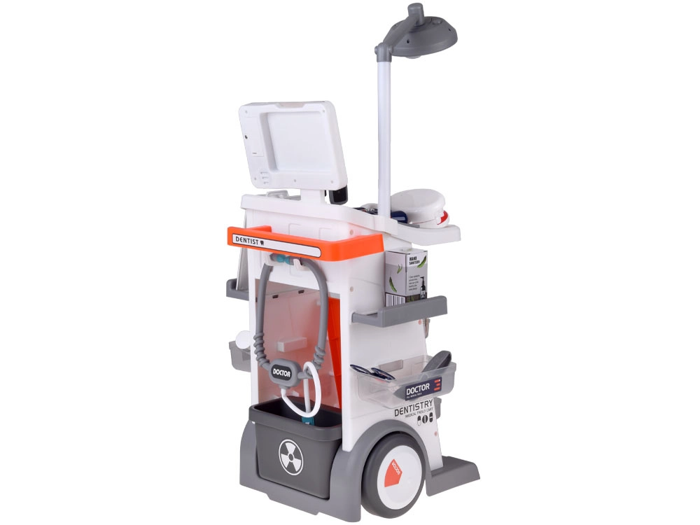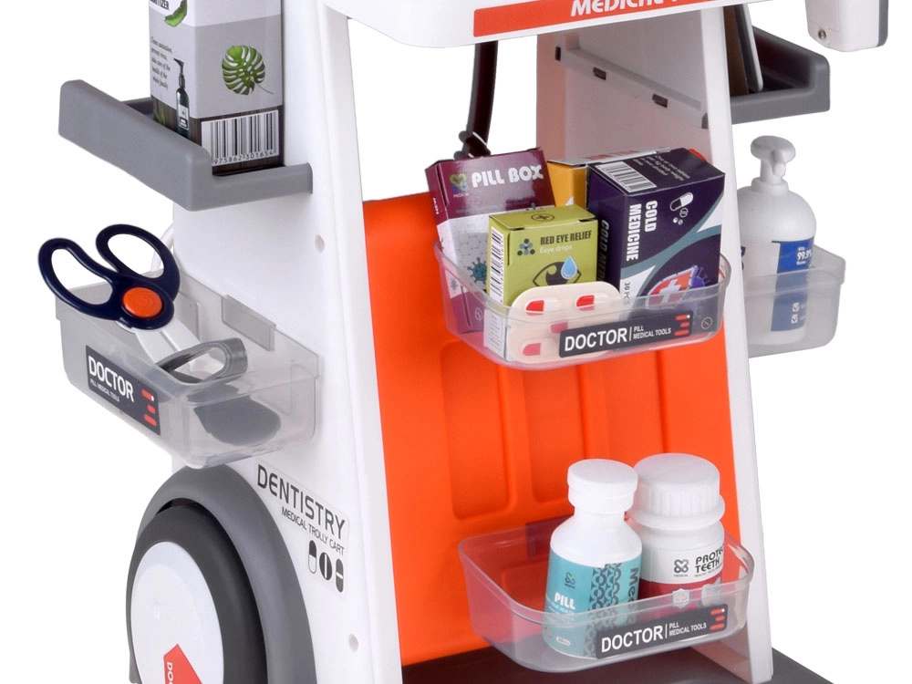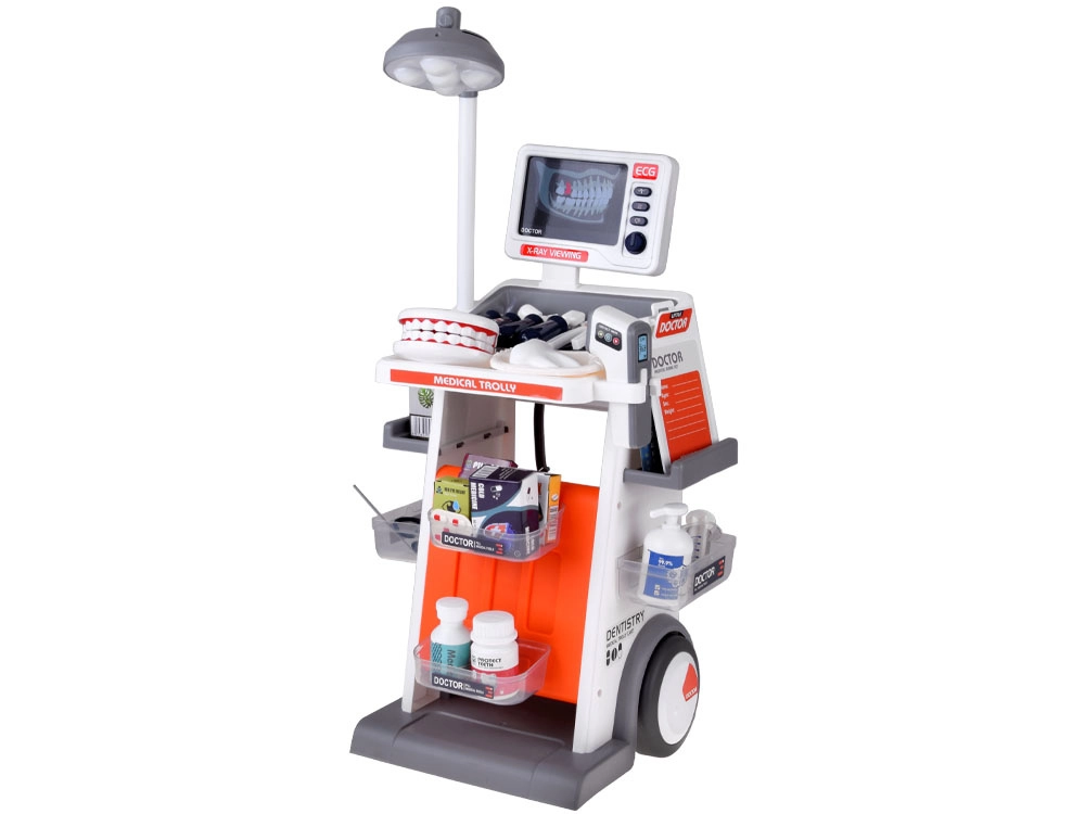 Pārveidojiet bērna istabu par mazu ordināciju. Interaktīvie ratiņi ar “X-Ray/ECG” monitoru, lampu, nodalījumiem un grozāmiem riteņiem sniedz autentisku ārsta un zobārsta rotaļu pieredzi. Bērni var klausīties sirdi, “rentgenēt” pacientu, pārbaudīt zobus uz žokļa modeļa un droši izmēģināt ikdienas procedūras. Reālistiskie gaismas un skaņu efekti pastiprina iespaidus un motivē izzināt.