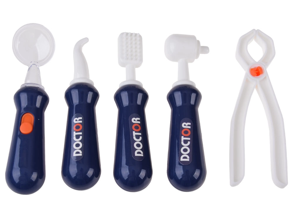Atverams žokļa modelis un atsevišķs “zobs” māca pareizus zobu kopšanas paradumus. Spogulītis, birstīte un zobārsta instrumenti veicina rotaļīgu izglītošanos.