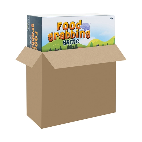 - Spēles dēlis, 4 nīlzirgi (dzeltens, zils, zaļš, oranžs), sarkanās bumbiņas, dzeltena bumbiņa, instrukcija, krāsains iepakojums, brūns transporta kartons