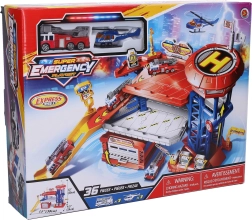Lieliska ugunsdzēsēju stacija mazajiem glābējiem piedāvā divstāvu garāžu 38 cm garumā ar daudzām funkcijām. Komplektā ir ugunsdzēsēju auto, helikopters, funkcionāls lifts, uzbrauktuves un atveramie vārti. Iekļautas arī uzlīmes un attēlu instrukcija vieglai salikšanai.