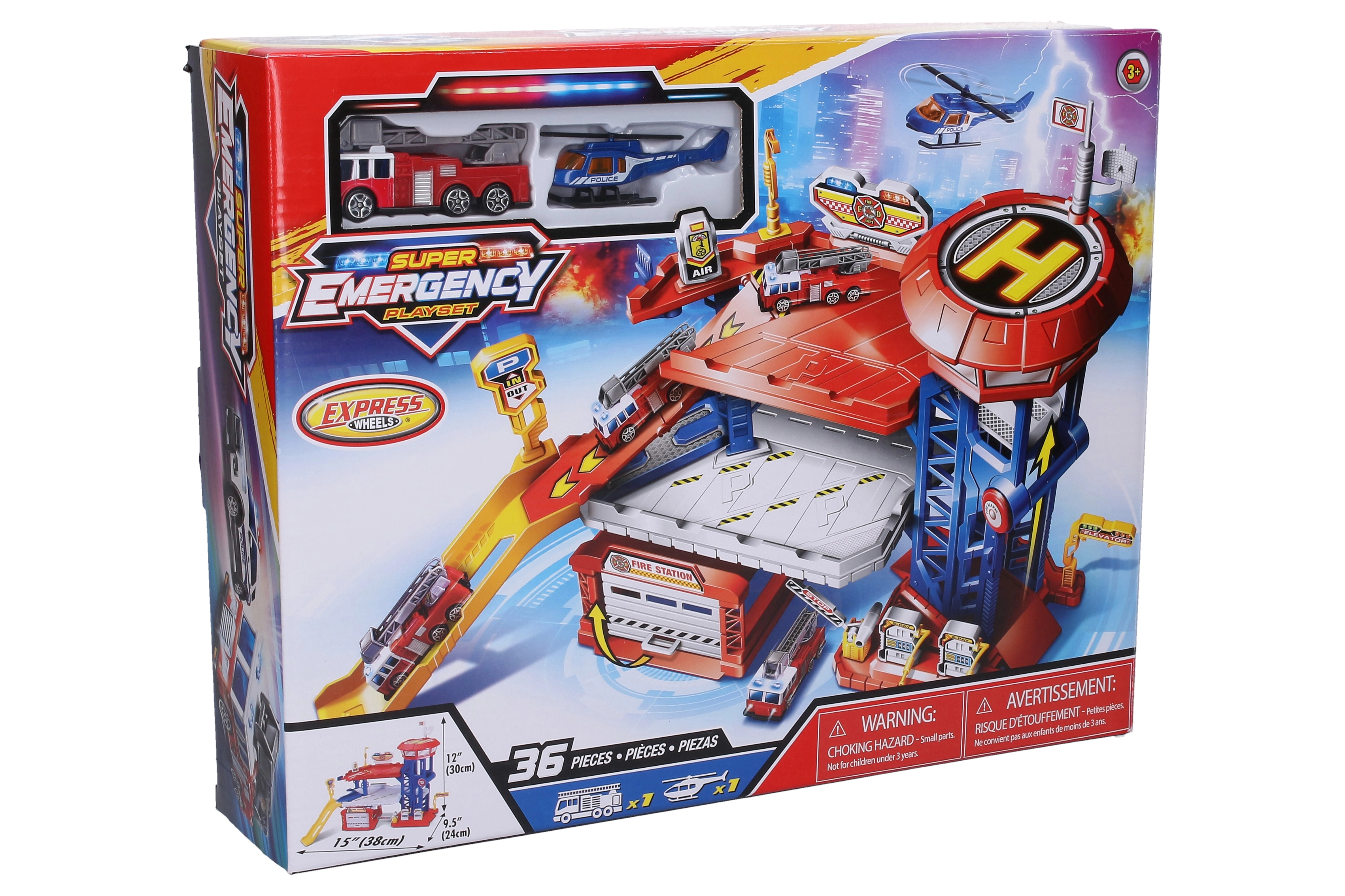 Iepakojumā ir viss nepieciešamais tūlītējai spēlei – ugunsdzēsēju auto, helikopters, uzlīmju komplekts un pārskatāma attēlu instrukcija. Rotaļlieta veicina iztēles attīstību, sīko motoriku un lomu spēles par glābšanas dienestu tēmu.