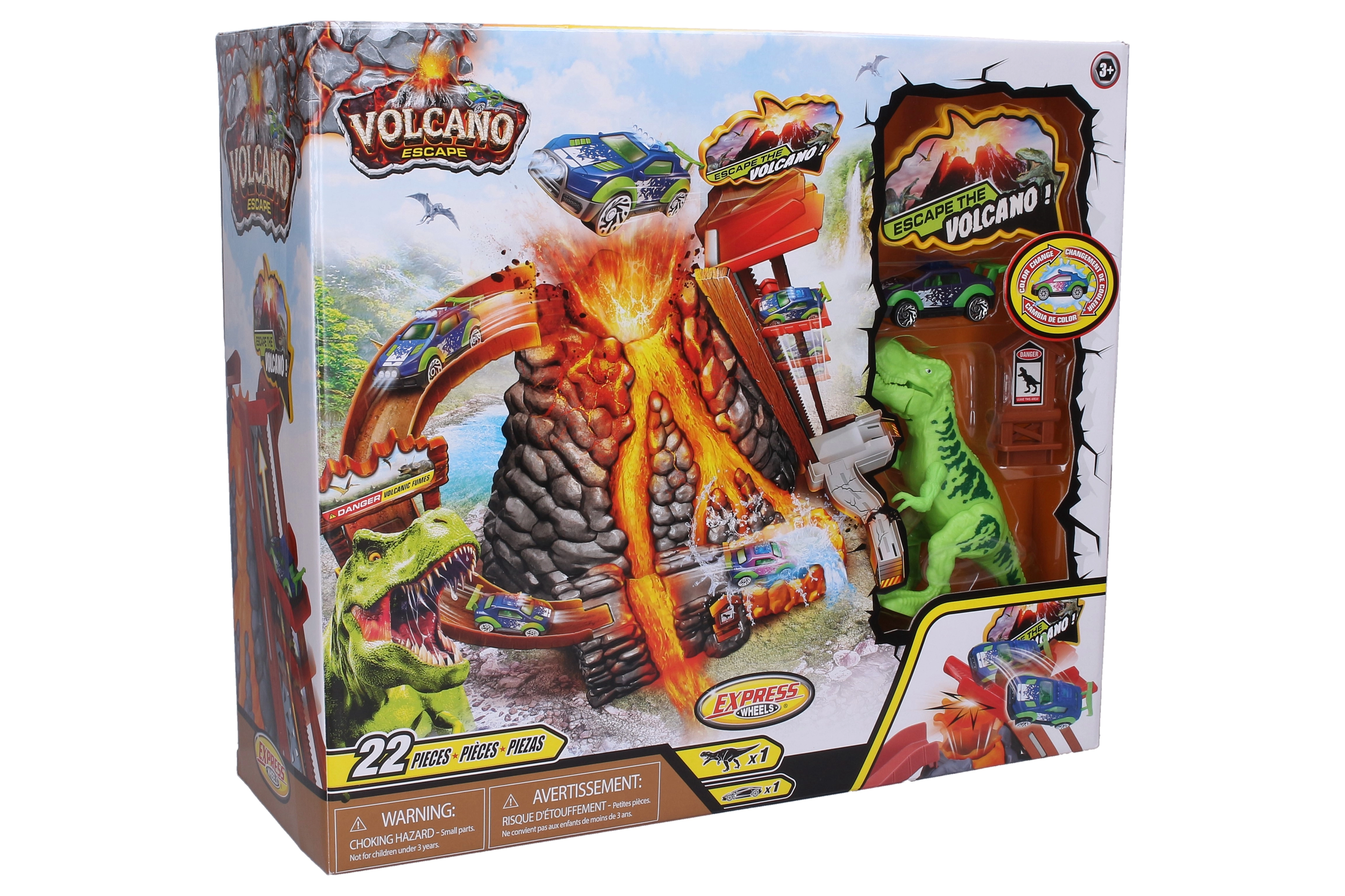 Izbaudiet dinamisku braucienu ar autotrasi ar vulkānu un mašīnīti, kas maina krāsu atkarībā no ūdens temperatūras. Komplektā ir lifts, nobrauciens krāterā, izbīdāma lava un ūdens vanna tūlītējai krāsas maiņai – silts ūdens maina krāsu, auksts to atgriež sākotnējā tonī.