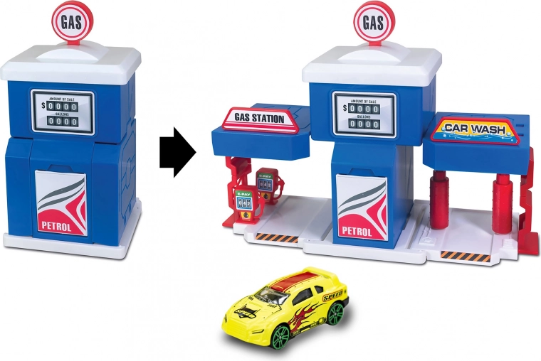 Kompakta un aizraujoša rotaļlieta mazajiem autovadītājiem: saliekama degvielas uzpildes stacija 15 cm izmērā. Ideāli piemērota bērnistabai un ceļošanai. Piedāvā vieglu salikšanu un izjaukšanu, attīsta iztēli un motoriku. Vieglā, pārnēsājamā un drošā rotaļlieta ikdienas spēlēm.