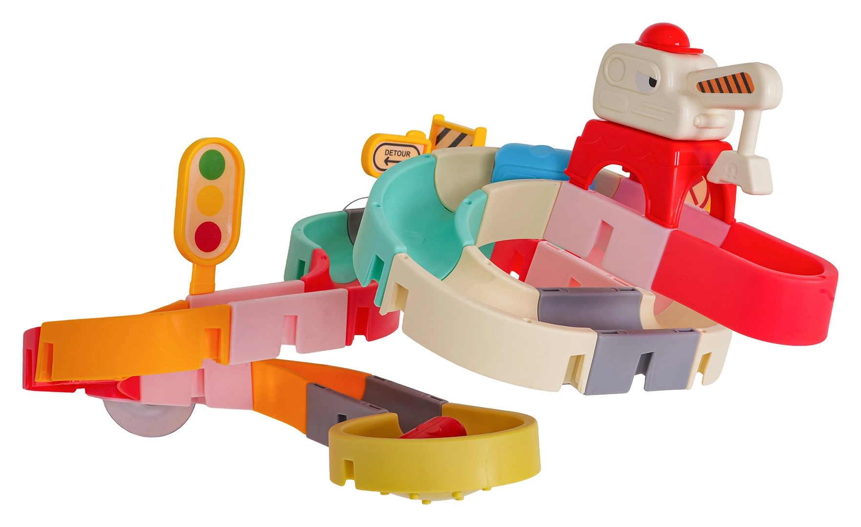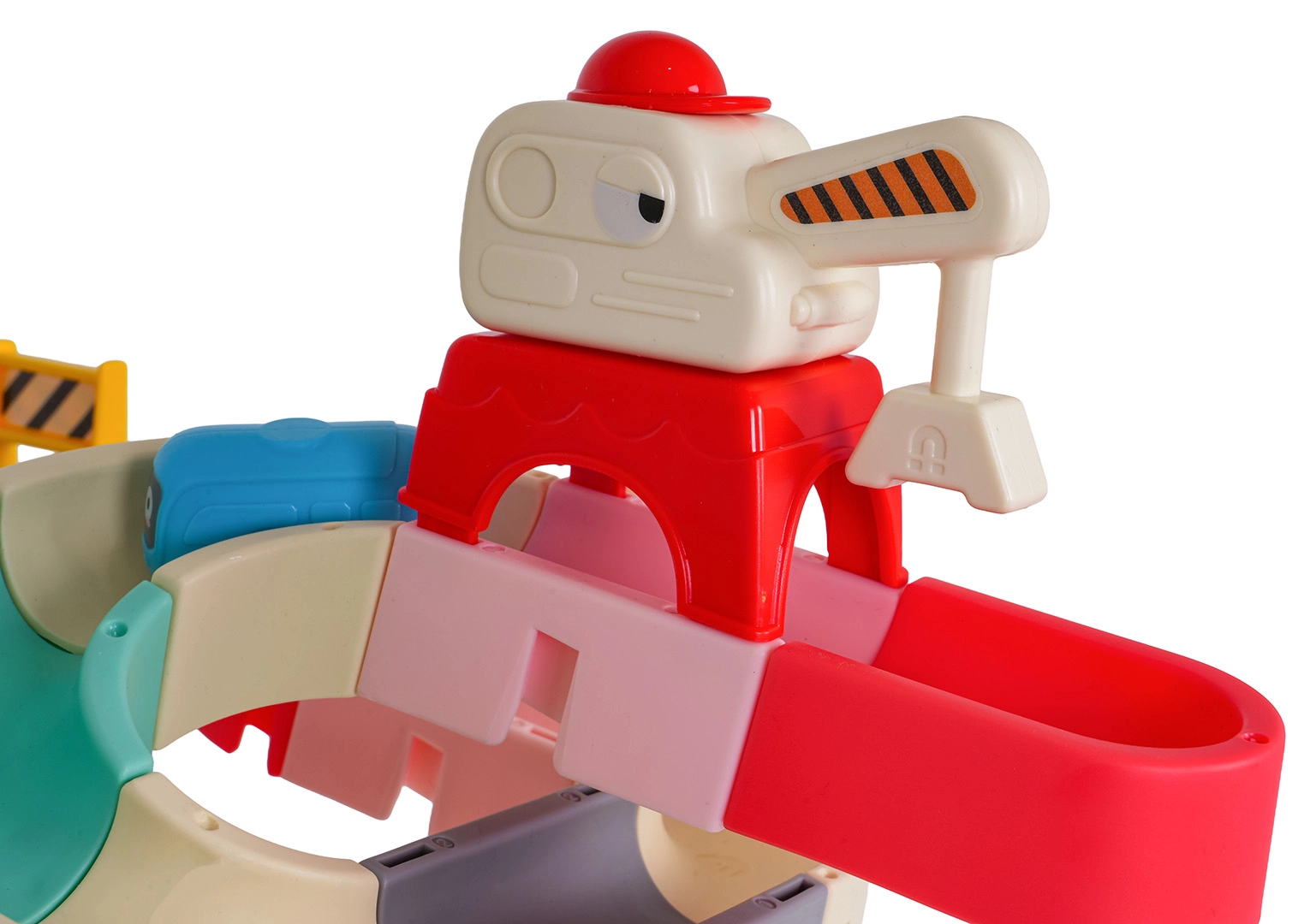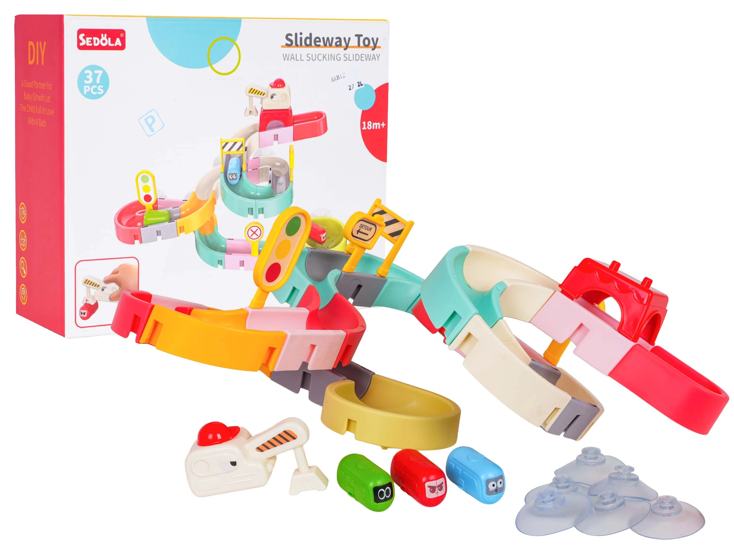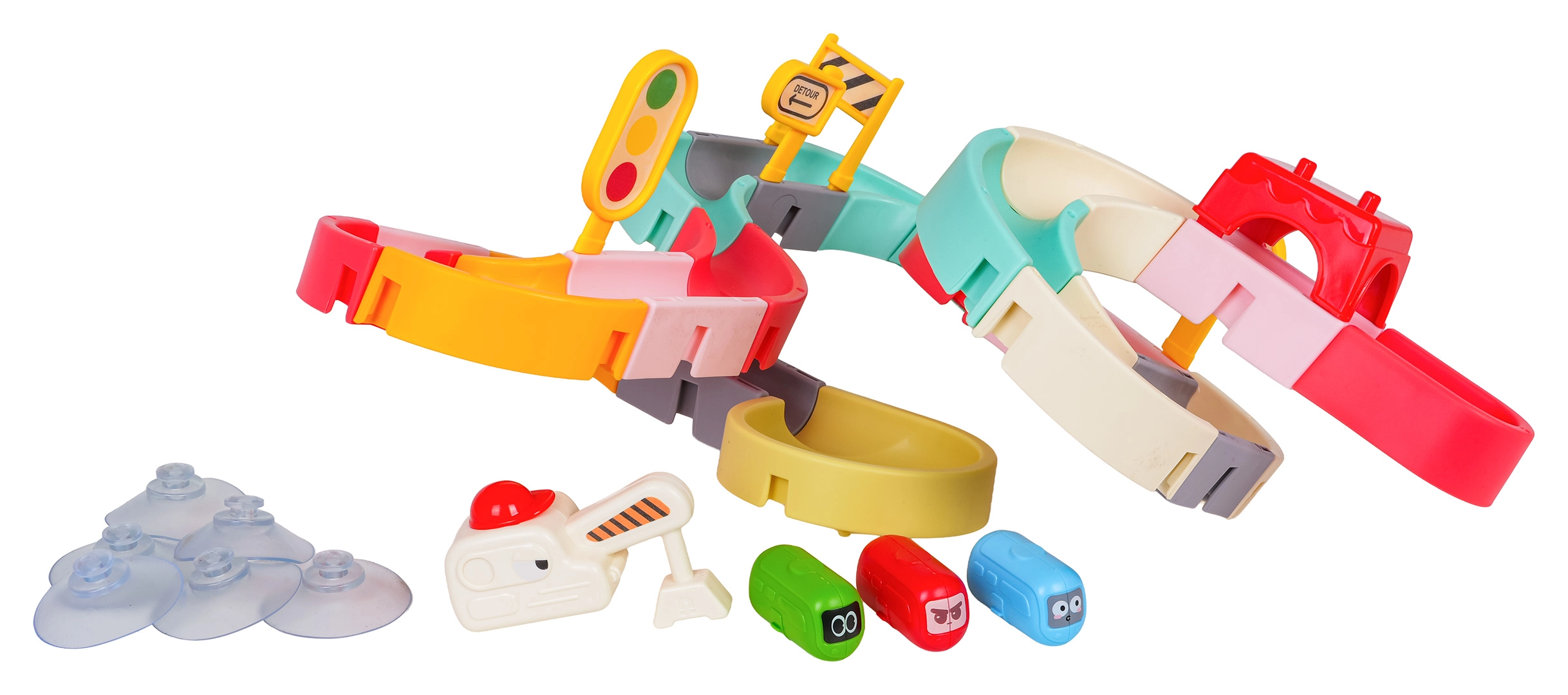Izklaide ir droša un daudzveidīga: kvalitatīvs plastmasa bez asām malām, spēcīgi piesūcekļi stabilitātei un spilgtas krāsas, kas iedvesmo bērnus veidot arvien jaunas trases. Komplektā ir arī ceļa zīmes, barjeras un uzlīmes vēl lielākai radošumam.