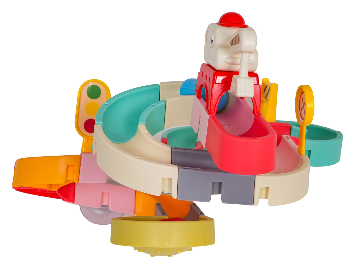 Krāsainas, savstarpēji savienojamas detaļas un satiksmes elementi veicina sīko motoriku, iztēli un cēloņu-seku izpratni.