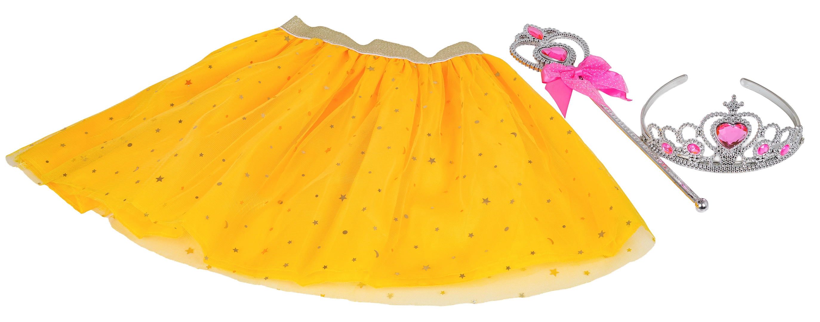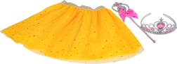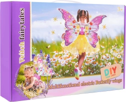 Pārvērtiet katru dienu pasakā ar šo burvīgo komplektu mazajām princesēm. Tajā ietilpst lieli tauriņa spārni ar gaismām un mūziku, dzelteni mirdzoši tutu svārki, sudrabains kronis un burvju nūjiņa. Pateicoties regulējamām lencēm, spārni labi turas, gaismas un skaņas efekti sajūsminās, bet vieglie svārki ar mirdzošām zvaigznītēm nodrošina ērtu valkāšanu. Ideāli karnevālam, uzstāšanās reizēm un fantāzijas spēlēm mājās. Spārniem ir vairāki plivināšanas un apgaismojuma režīmi, un tie darbojas ar 4× AA 1,5 V baterijām (nav iekļautas).
