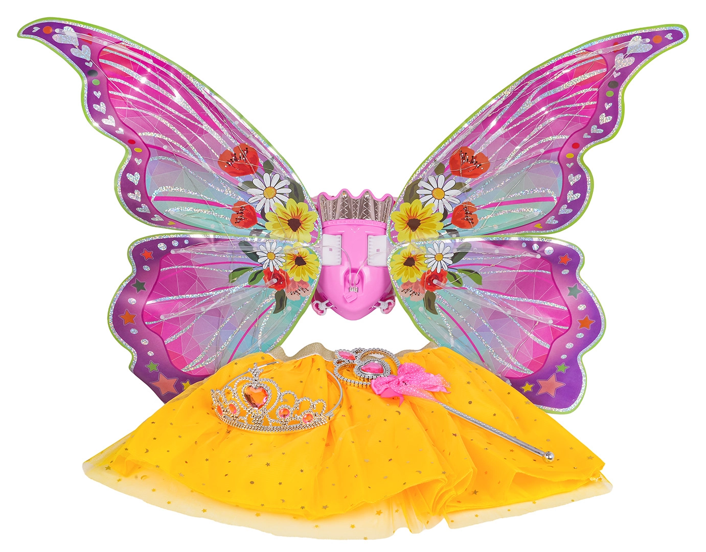 - tauriņa spārni ar gaismām un skaņu, dzelteni svārki, burvju nūjiņa, kronis