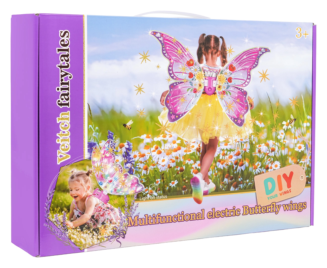 Tauriņa spārniem ir vairāki režīmi: mūzika + plivināšana + gaismas efekti, plivināšana + gaismas, plivināšana + gaismu mirgošana un tikai plivināšana. Regulējamas siksniņas nodrošina ērtu stiprinājumu, vieglā konstrukcija un dažkrāsainas LED gaismiņas piešķir katrai spēlei burvīgu atmosfēru.