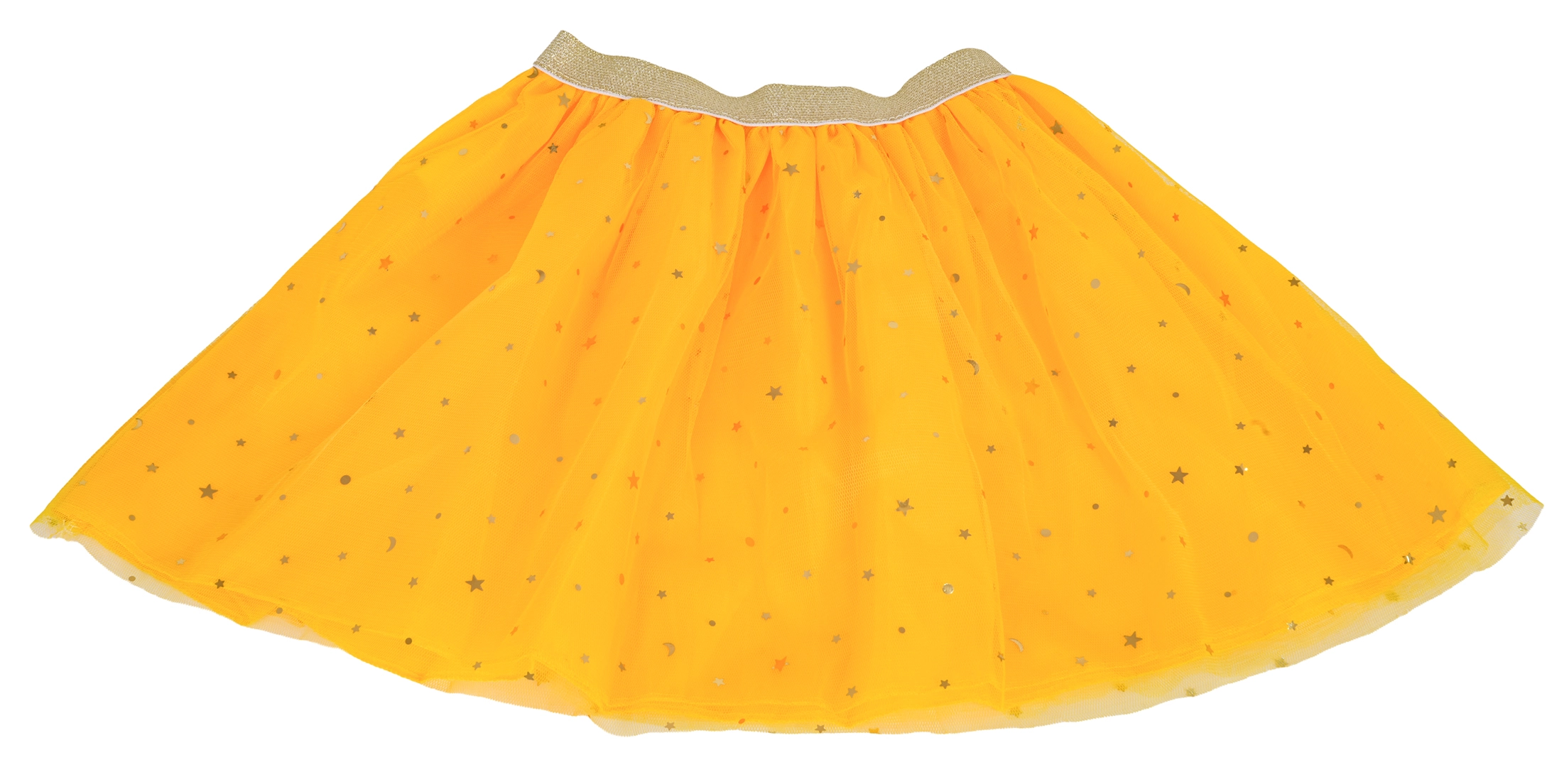 Vieglie tila svārki ar mirdzumiem un elastīgu jostu lieliski pielāgojas un ļauj brīvi kustēties gan dejā, gan rotaļās.