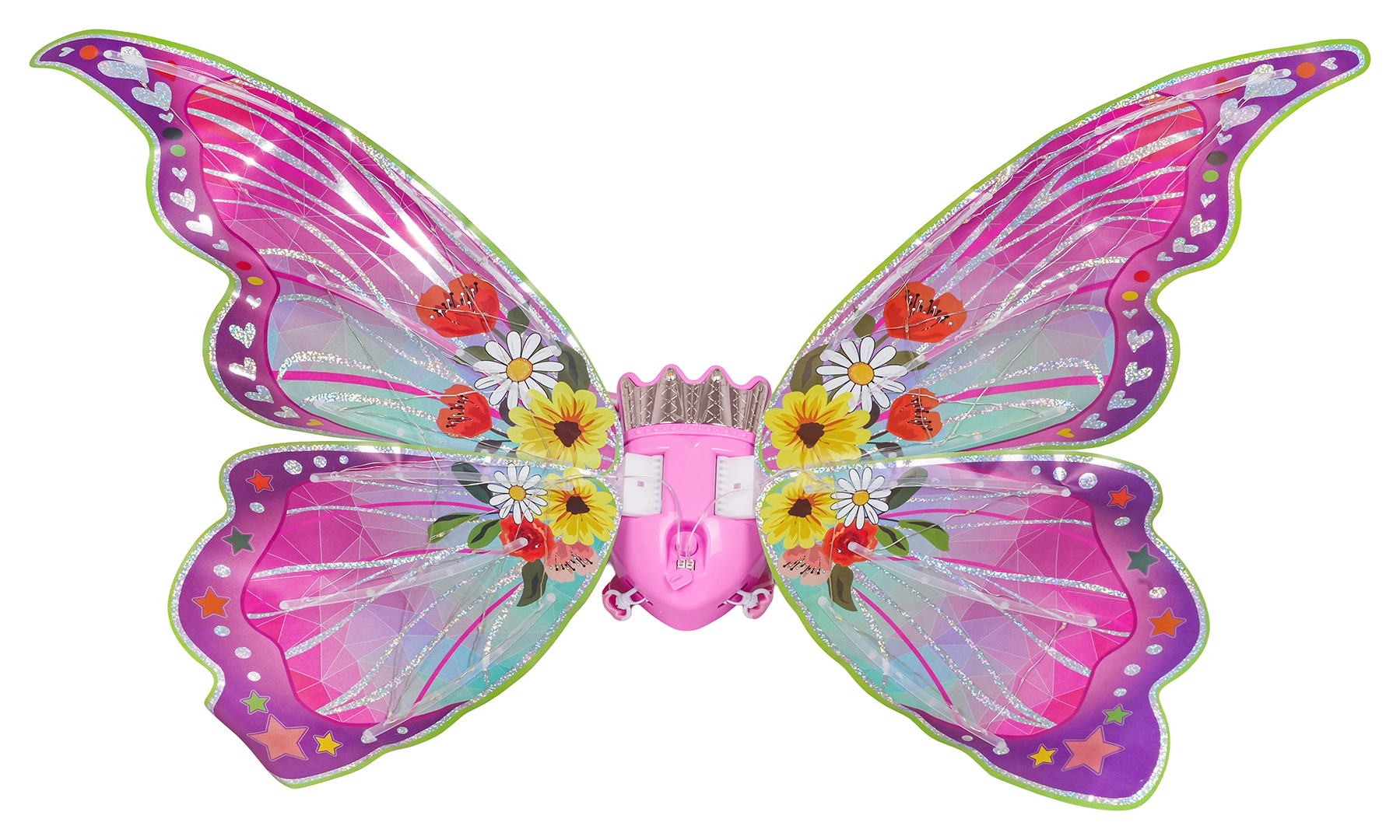 Krāsaini spārni ar LED gaismiņām un plivināšanu piedāvā režīmus ar gaismām, mirgošanu un mūziku – maksimālam burvīgumam katrā spēlē.