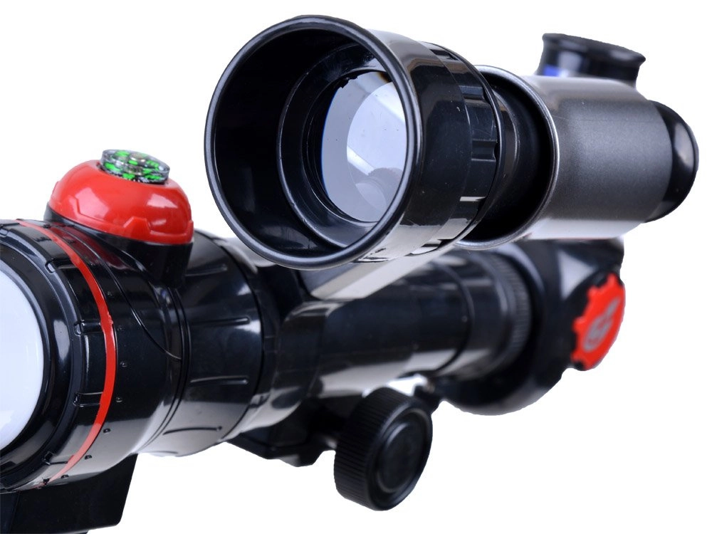 - teleskops, 3× okulārs, diagonālais prizms, mini kompass, statīvs