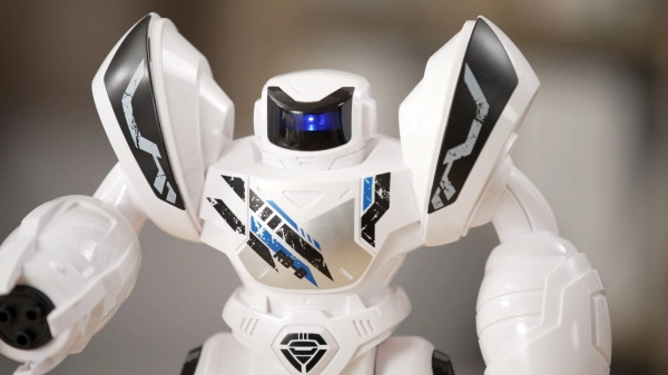 Robots šauj šāviņus, bet darbību pavada iespaidīga LED seja un skaņas efekti vēl lielākai izklaidei.