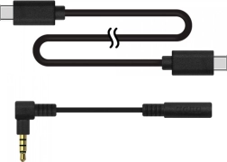 - Kameras modulis, pamatne (stends warp caurules formā), USB‑C uz USB‑C kabelis, 3,5 mm stereo adapteris ar leņķi