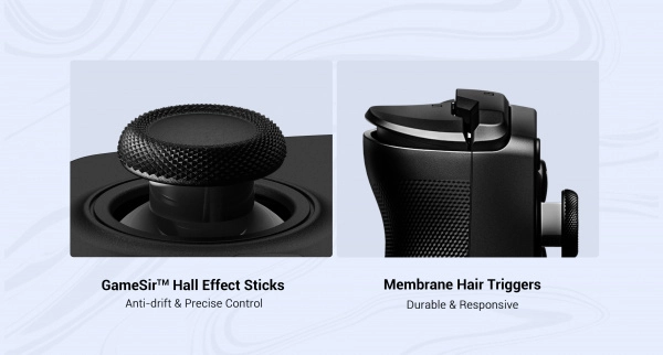 Viegls un jaudīgs GameSir X5 Lite (apm. 135 g) paceļ mobilās spēles nākamajā līmenī. Tiešs vadu savienojums caur USB‑C nodrošina praktiski nulles aizturi, tāpēc katra darbība ir precīza un acumirklīga. Hall efekta analogās sviras piedāvā vienmērīgu 360° diapazonu, augstu izturību un nemainīgu precizitāti bez drifta.