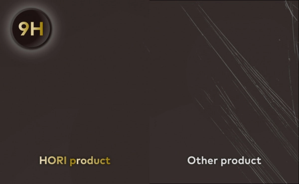 - 9H cietība – izturība pret skrāpējumiem no atslēgām, monētām un citiem priekšmetiem.