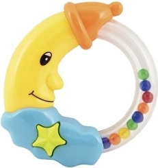 Jauks grabulītis mēness formā iepriecinās katru mazuli jau no dzimšanas. Pateicoties vieglajai plastmasas konstrukcijai, to ir viegli satvert, un kustības laikā tas izdod patīkamas skaņas, kas veicina uztveri un nomierina. Viegls plastmasas materiāls, patīkama skaņa, divi krāsu varianti, piemērots no 0 mēnešiem.