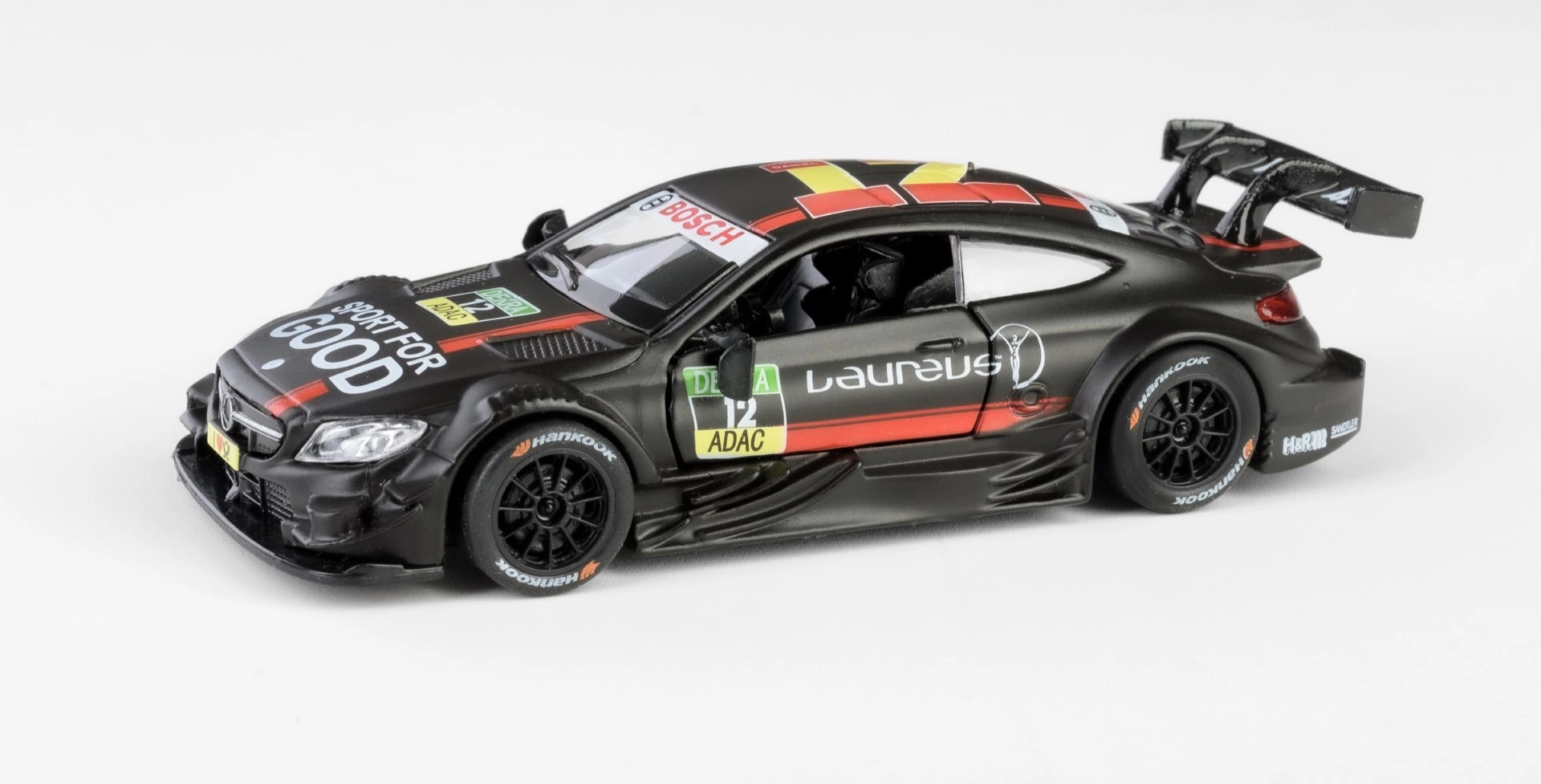 Precīzi izstrādāts automobiļa modelis MERCEDES-AMG C 63 DTM mērogā 1:43 iepriecinās gan kolekcionārus, gan mazos entuziastus. Tas piedāvā detalizētu izpildījumu, atveramas sānu durvis, pull-back piedziņu braukšanai uz priekšu un gumijas riepas realistiskākam izskatam. Izturīgā metāla un plastmasas kombinācija nodrošina ilgu kalpošanas laiku, bet drošību apliecina CE sertifikācija.