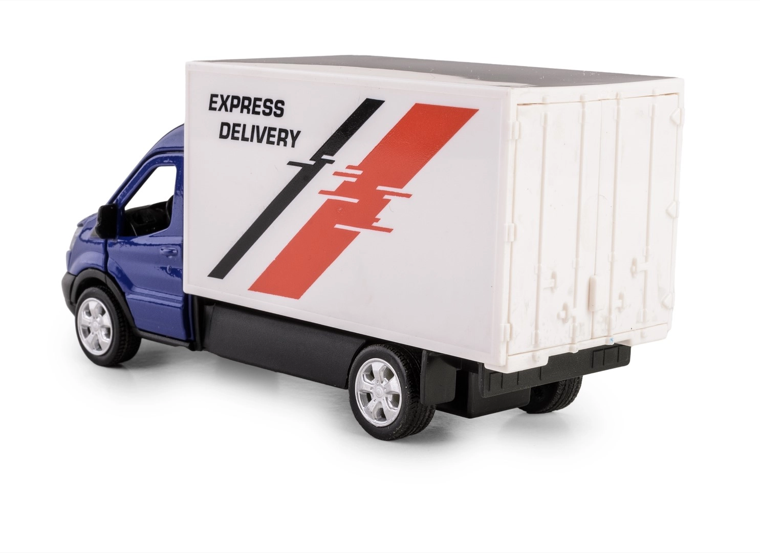 Pateicoties atveramām durvīm, var ieskatīties interjerā, bet pull-back mehānisms pēc uzvilkšanas izšauj auto uz priekšu. Reālistisku izskatu pastiprina zilais krāsojums, sudrabotas riepas un izteiksmīga Express Delivery apdruka.