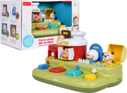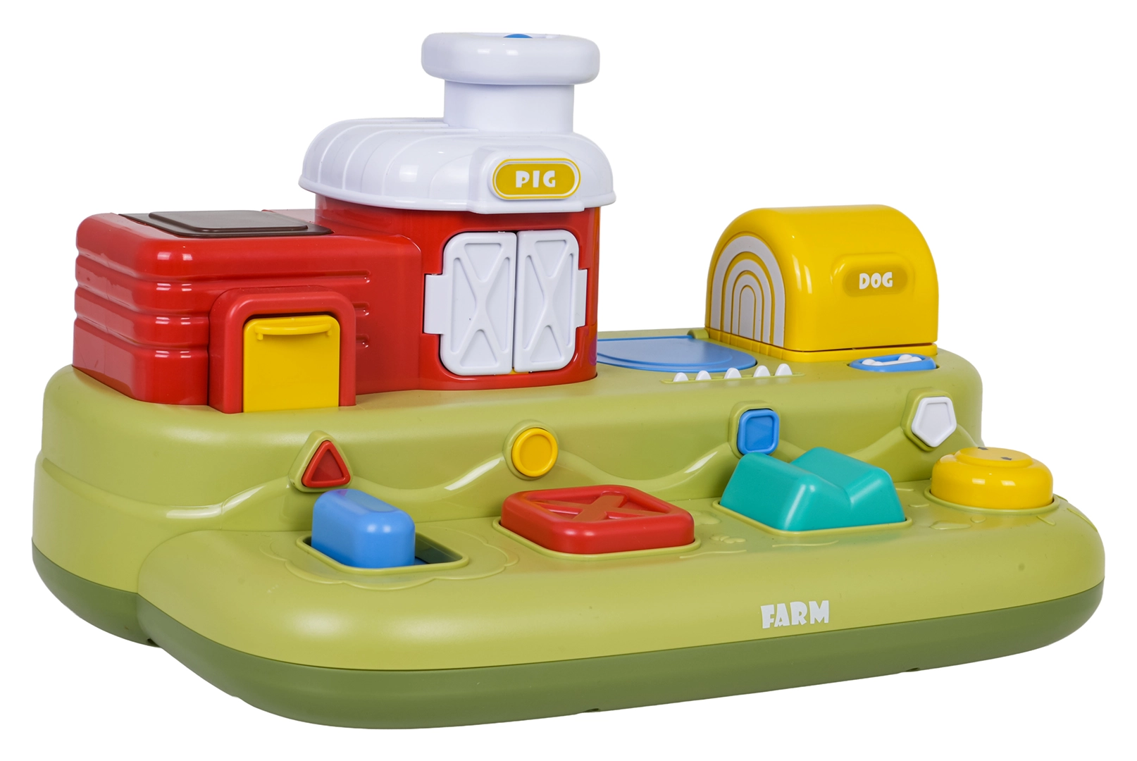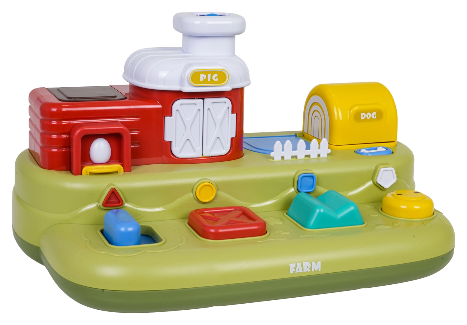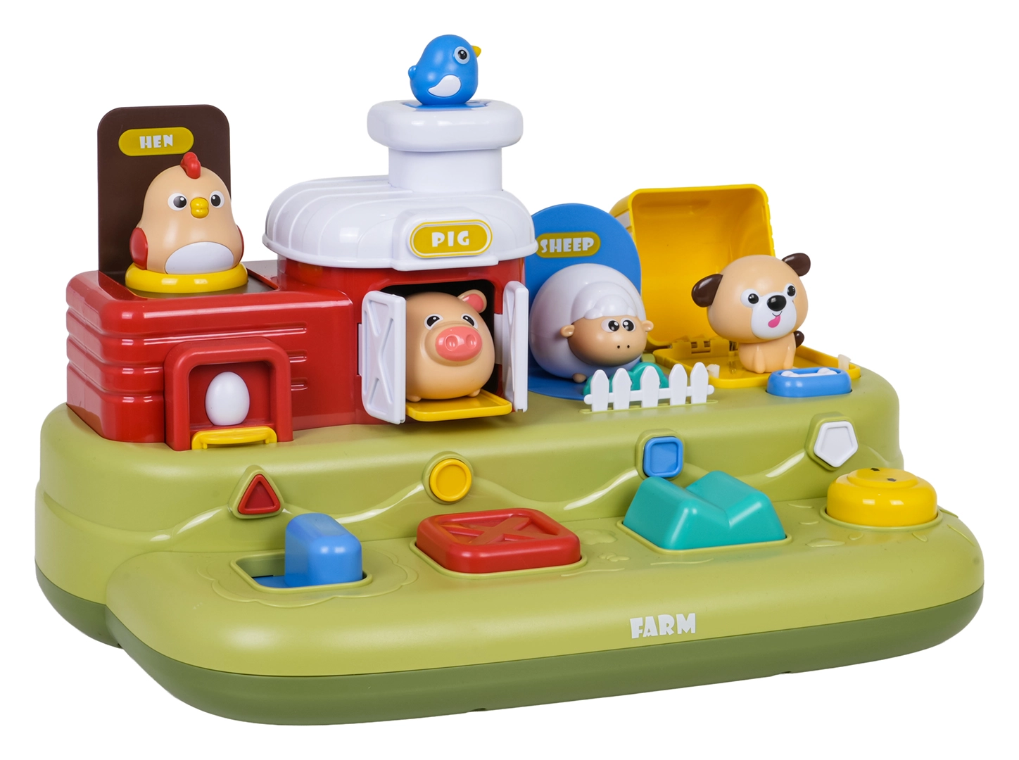 Šī jautrā ferma bērniem sniedz daudz atklājumu: pabīdot zilo slīdni, izlec cālītis; nospiežot sarkano pogu, atveras durtiņas ar sivēntiņu; nospiežot zaļo, parādās aitiņa, bet pagriežot dzelteno vadības ritenīti, izlūko sunītis. Virs vadības elementiem ir papildu pogas, kas iedarbina melodijas, dzīvnieku skaņas un citus efektus.