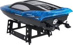 Šī zilā RC motorlaiva ir izstrādāta ātrai un precīzai kustībai pa ūdens virsmu. Kvalitatīvi materiāli un aerodinamisks korpuss nodrošina lieliskas braukšanas īpašības, savukārt LED gaismas uzlabo redzamību un piešķir pievilcīgu izskatu vakara braucienos. 2,4 GHz vadība nodrošina uzticamu darbības rādiusu bez traucējumiem, tāpēc var braukt vienlaikus ar vairākām laivām.