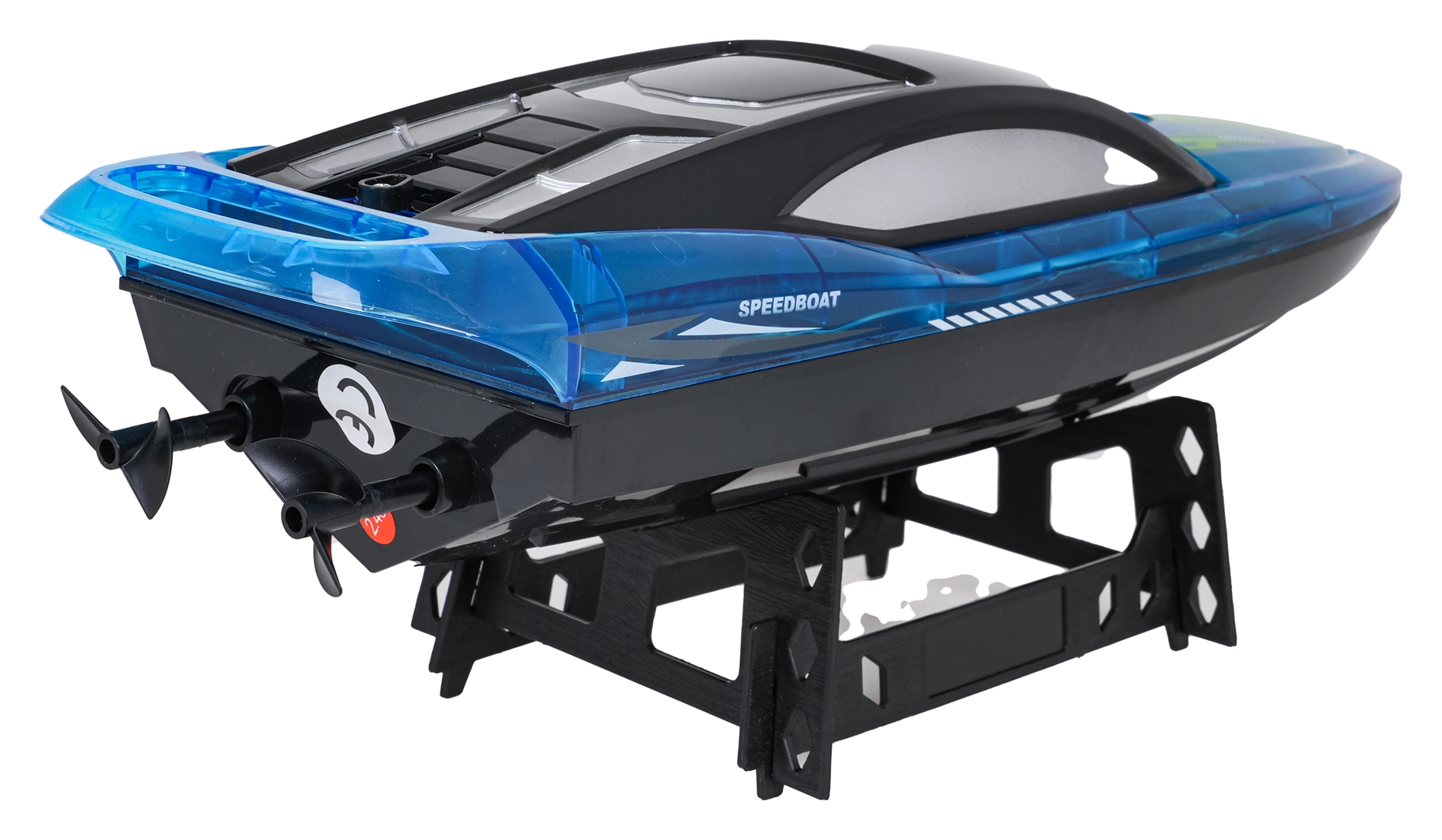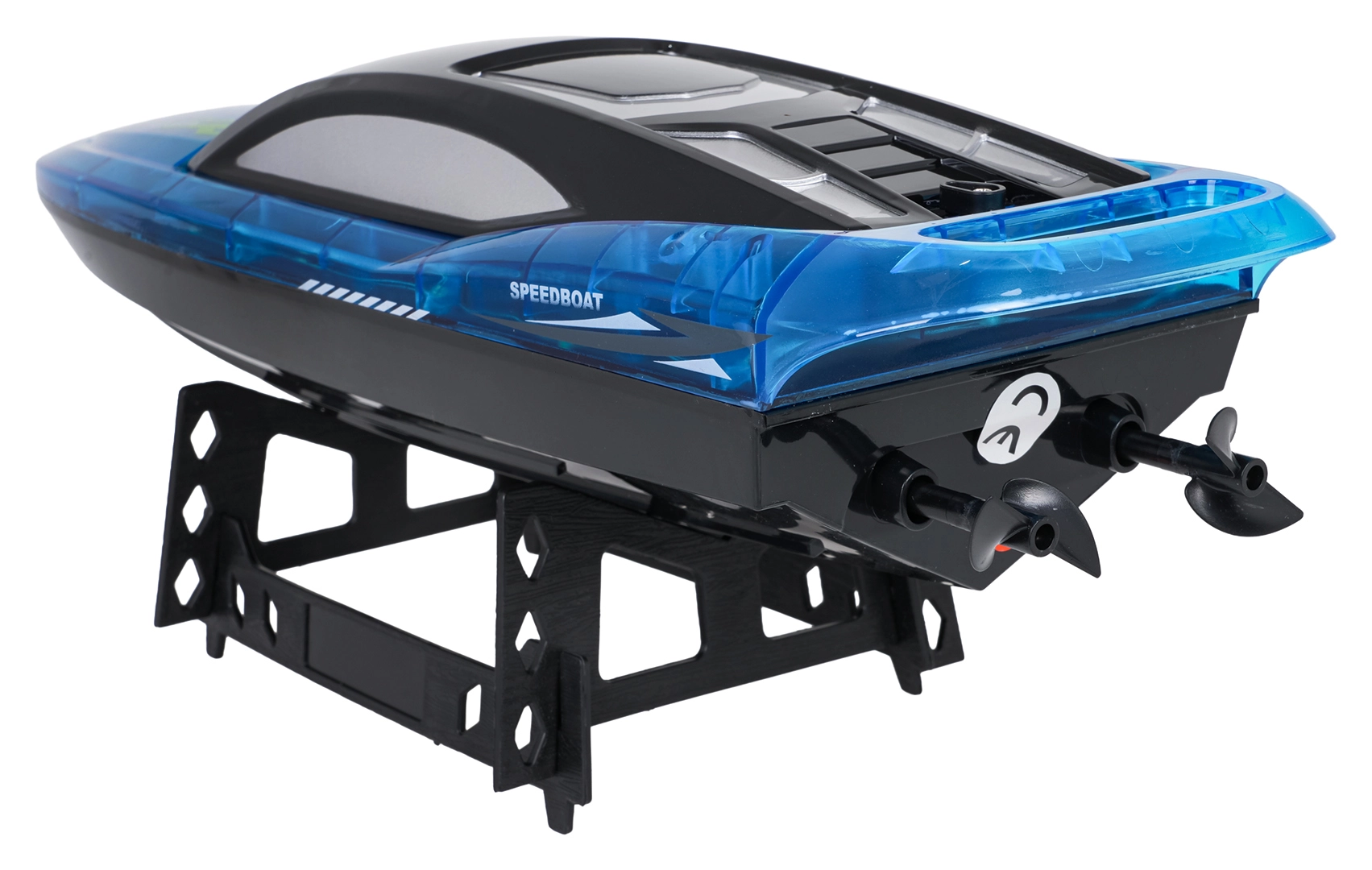 Divi aizmugurējie propelleri un stūrēšanas lāpstiņas nodrošina strauju paātrinājumu un precīzu pagriešanos uz priekšu un atpakaļ — ideāli sacīkstēm baseinā vai dīķī.