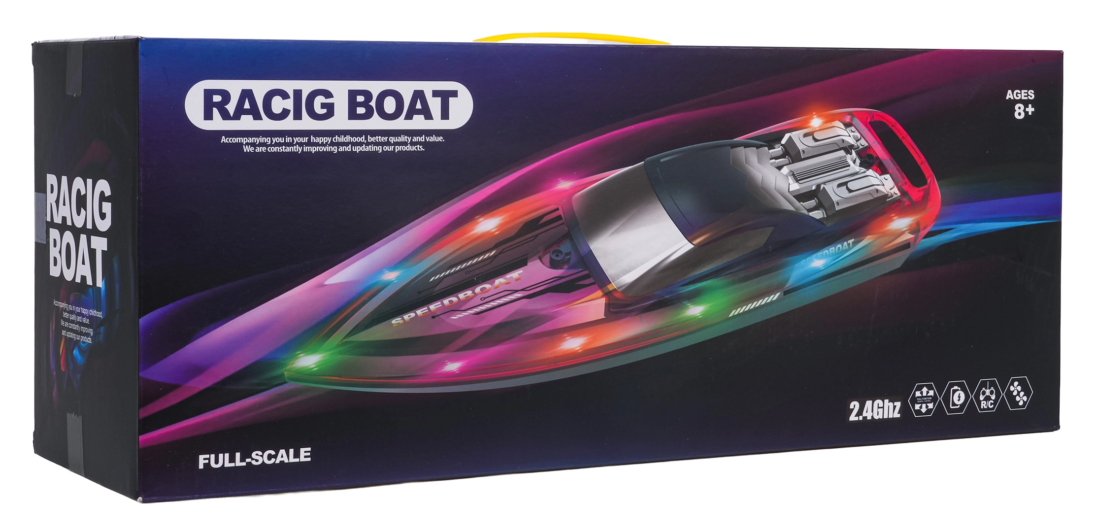 Izbaudi adrenalīnu uz ūdens ar šo ātro RC sacīkšu laivu bērniem no 8 gadu vecuma. Pateicoties 2,4 GHz vadībai, LED apgaismojumam un drošības sensoram darbībai tikai ūdenī, braukšana ir gan jautra, gan droša. Izturīgā konstrukcija un slaids, aerodinamisks korpuss nodrošina stabilitāti un lielu ātrumu. Komplektā ir uzlādējams akumulators, USB kabelis, rezerves propelleri un praktisks stends.