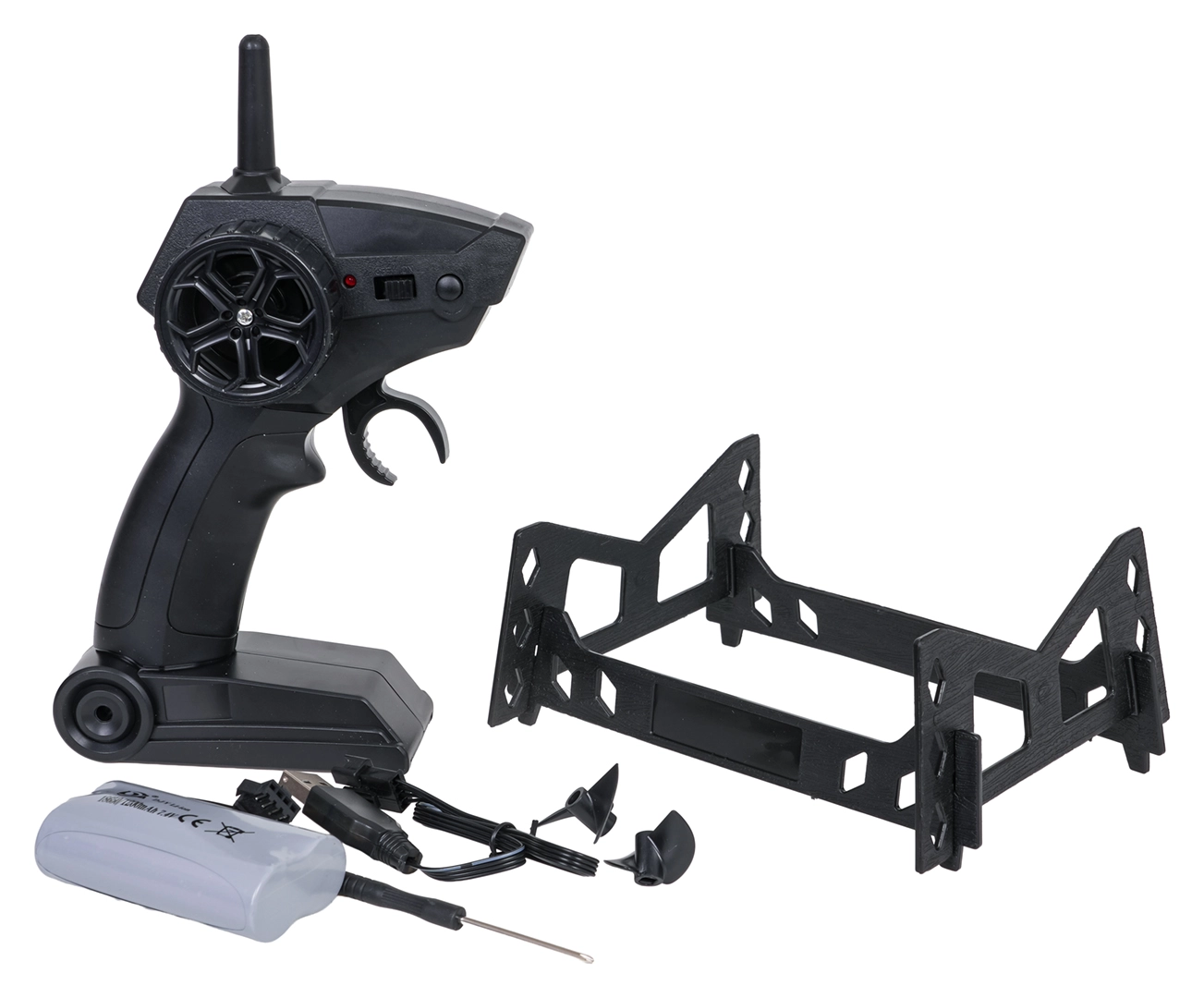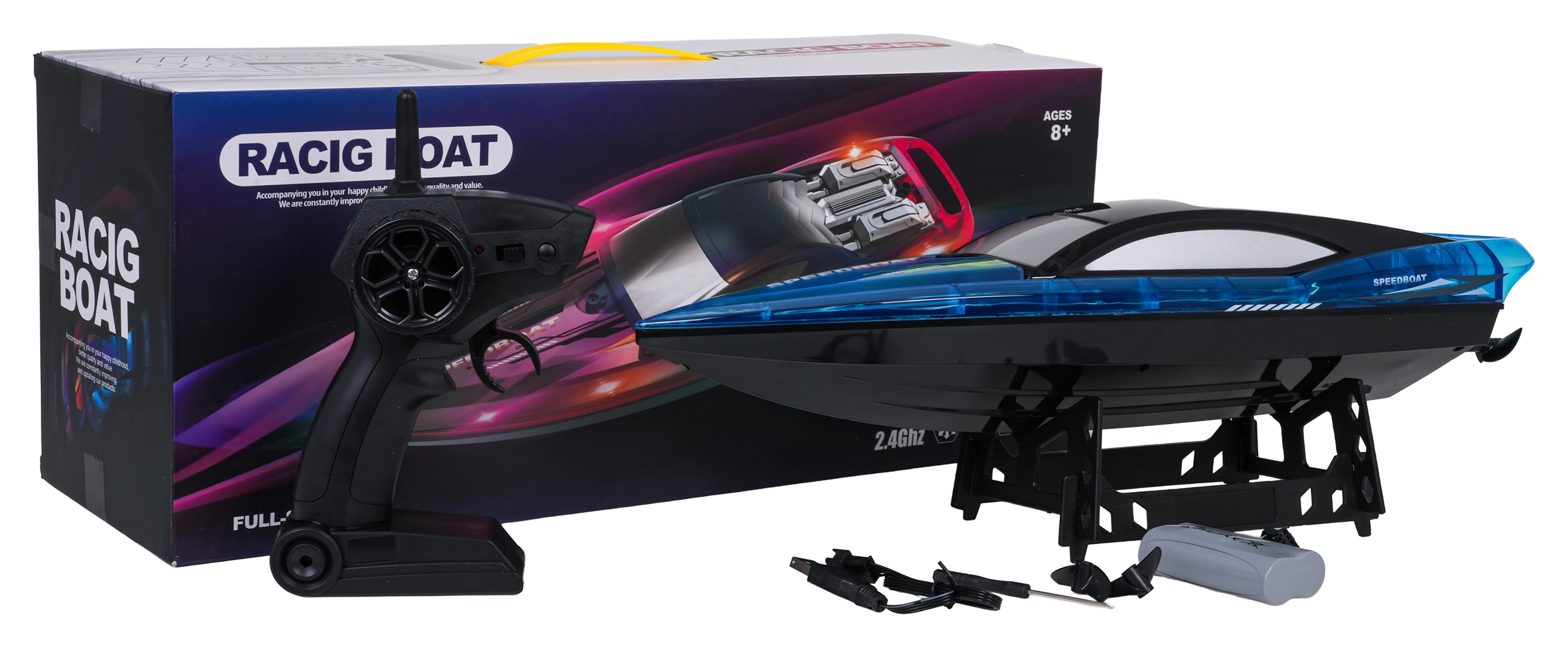 - Laiva, 2,4 GHz tālvadības pults, akumulators, USB uzlādes kabelis, 2× rezerves propelleris, skrūvgriezis, laivas stends, instrukcija