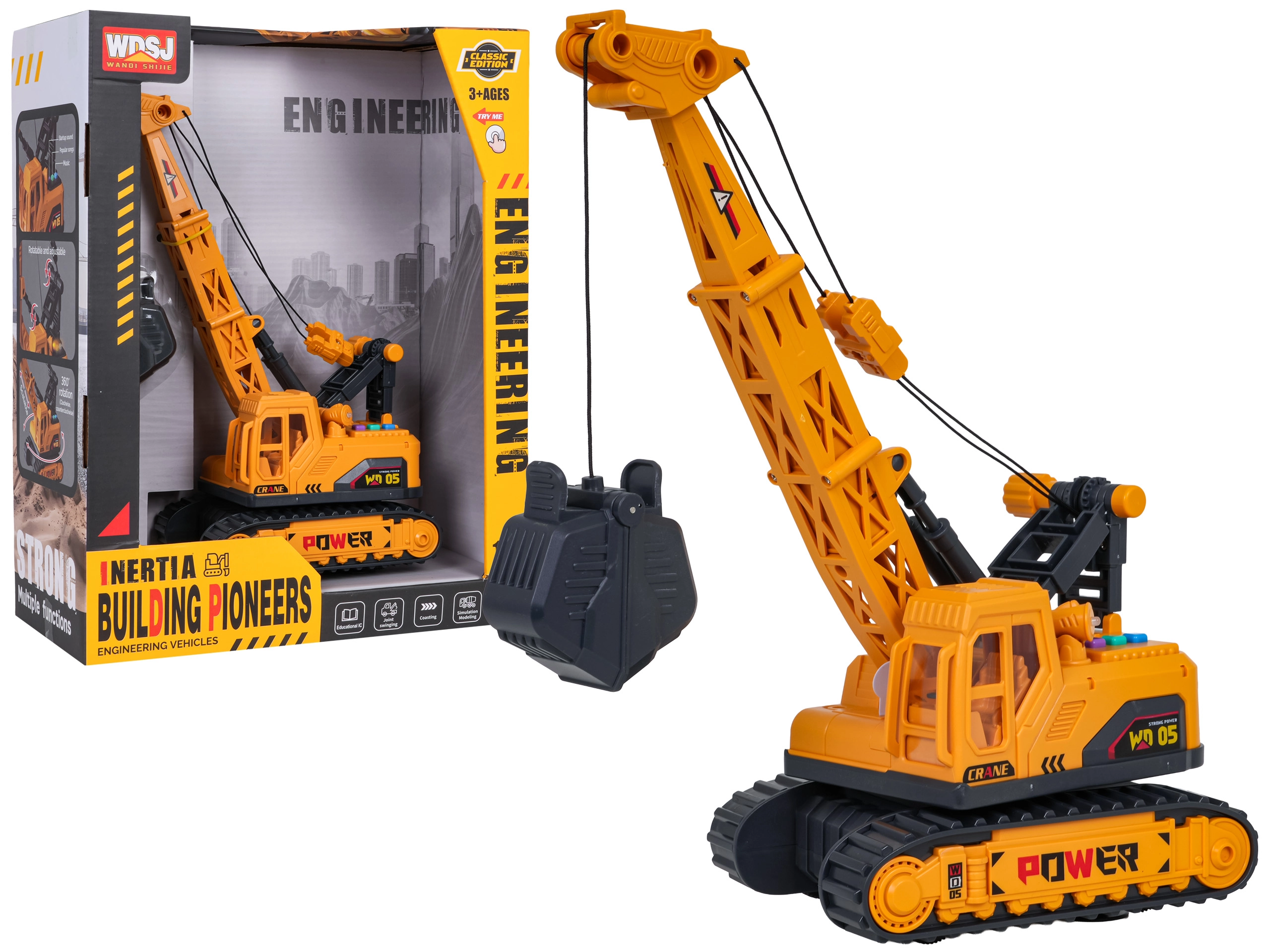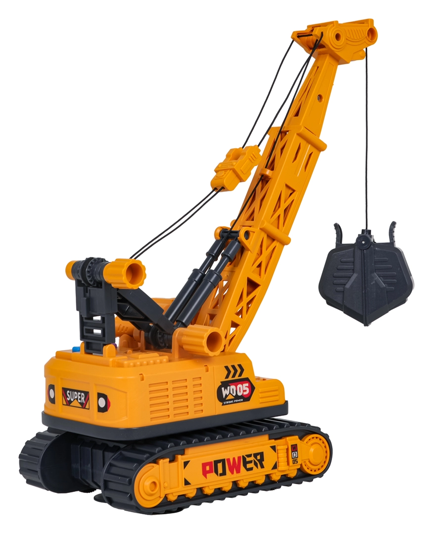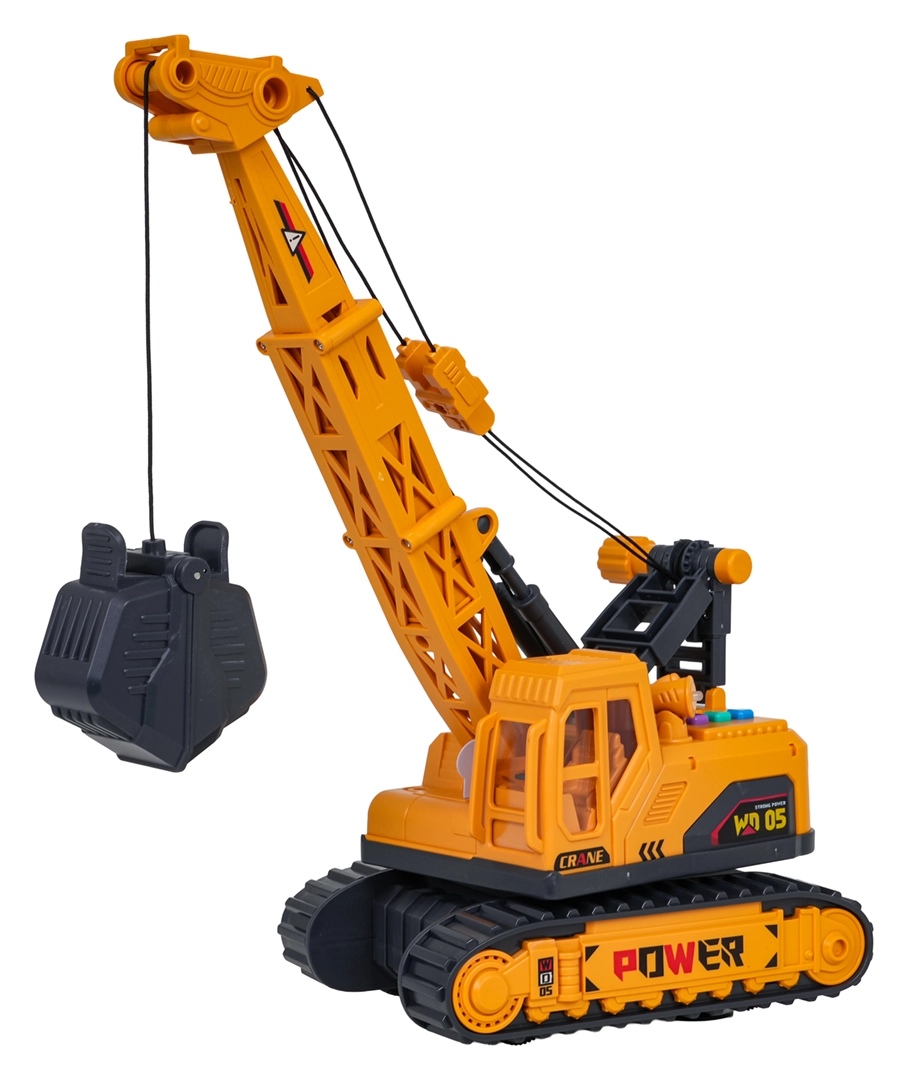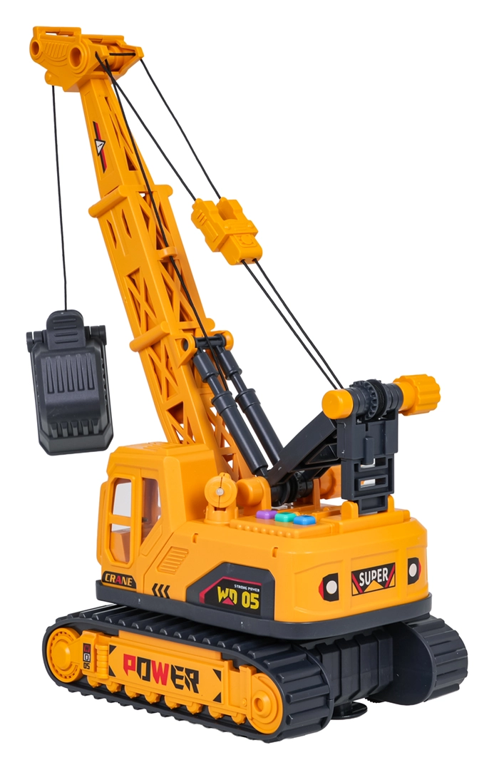 Interaktīvs ķēžu celtnis mērogā 1:16 iepriecinās mazos būvniekus no 3 gadu vecuma. Piedāvā manuāli vadāmu izlici un nolaižamu knaibļu grozu, 360° rotējošu pamatni un gaismas un skaņas efektus. Pateicoties kvalitatīvam izpildījumam un detaļām, tas ir ideāli piemērots radošām celtniecības spēlēm. Baterijas ir iekļautas komplektā.