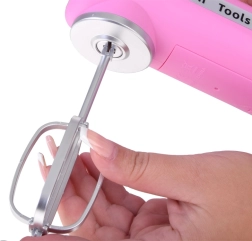 Pēc 2× AA bateriju ievietošanas uzgalis patiešām griežas. Bērni var izmēģināt “putošanu” un “maisīšanu” gluži kā īstā virtuvē.