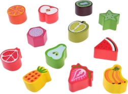 Komplektā ietilpst košu augļu detaļas ievietošanai atbilstošajos caurumos. Bērni mācās krāsas, formas un augļu nosaukumus, kā arī trenē loģisko domāšanu.