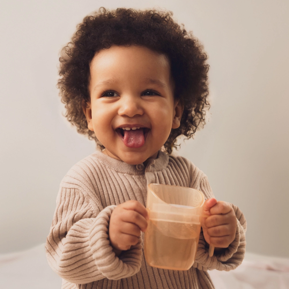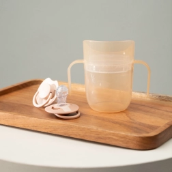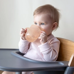 Vieglā konstrukcija, profilētie dubultrokturi un mazāks sākuma tilpums (apm. 130 ml ar ieliktni) atvieglo pāreju no pudelītes. Kad bērns ir gatavs, ieliktni var vienkārši izņemt un iegūt atvērtu krūzi ar 150 ml tilpumu – viens izstrādājums patiesi aug līdzi bērnam.