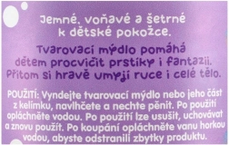 Šī violetā veidojamā ziepju masa pārvērš roku mazgāšanu un vannas laiku jautrā spēlē. Bērni to var mīcīt, rullēt un veidot, vienlaikus dabiski apgūstot pareizus higiēnas paradumus. Sastāvs ir saudzīgs un dermatoloģiski testēts, tāpēc piemērots ikdienas lietošanai.