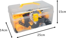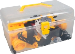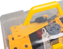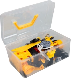 Šis komplekts mazajiem konstruktoriem piedāvā plašu interaktīvu detaļu klāstu, tostarp riteņus, zobratus, skrūves un instrumentus, ar kuriem bērni var salikt dažādus ritošus transportlīdzekļus un vienkāršus mehāniskus modeļus. Viss ir ērti sakārtots izturīgā uzglabāšanas kārbā ar rokturi, tāpēc komplektu ir viegli pārnēsāt un glabāt.