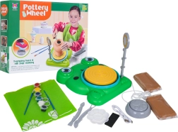 Rotaļīgais vardes podnieka ritenis ar kāju pedāli piedāvā bērniem drošu un aizraujošu veidu, kā apgūt keramikas pamatus. Ritenis griežas divos ātrumos (lēns/ātrs), lai bērni varētu viegli pielāgot darba tempu. Pēc izveidošanas traukus var izkrāsot ar pievienotajām krāsām un lepni izstādīt.