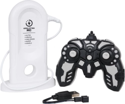 Komplektā ir stacija, kas simulē uzlādi, un USB kabelis. Iepakojumā iekļauts 3,7 V uzlādējams akumulators, atliek tikai ievietot baterijas pultī.