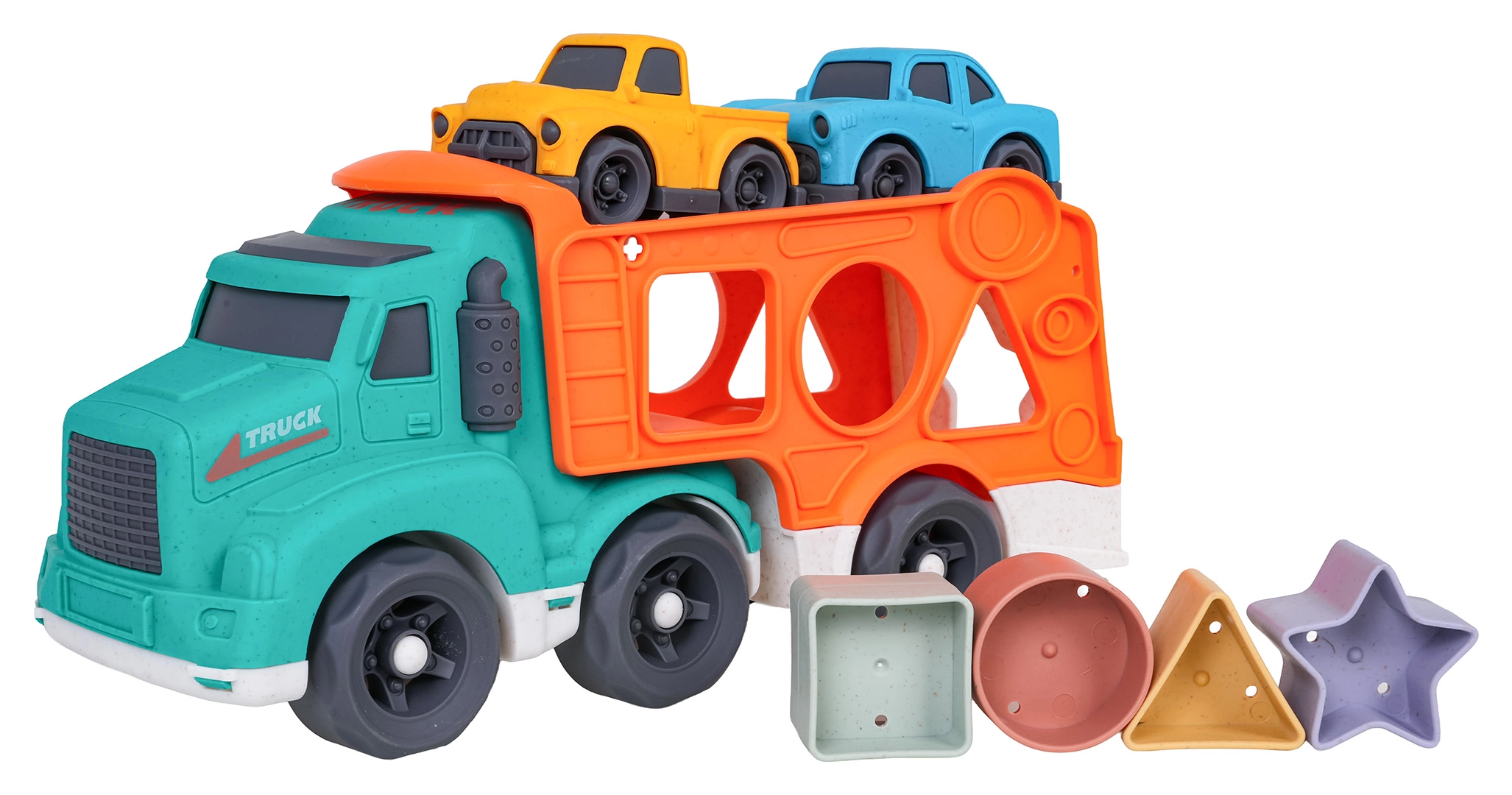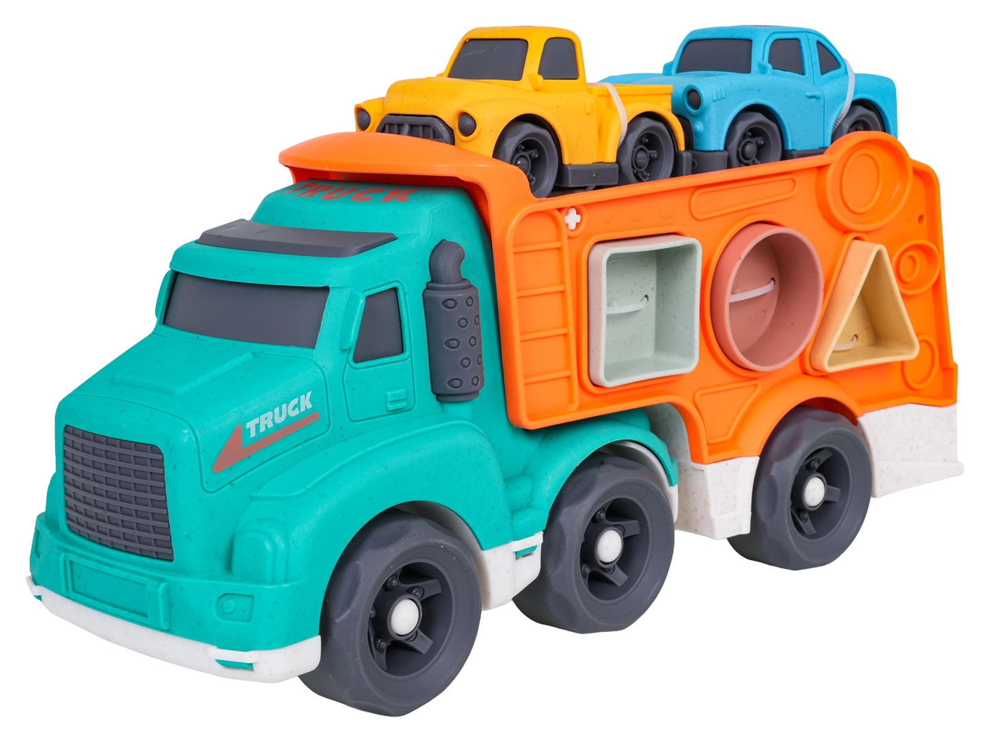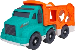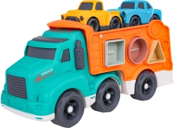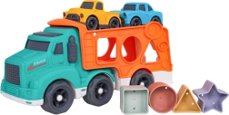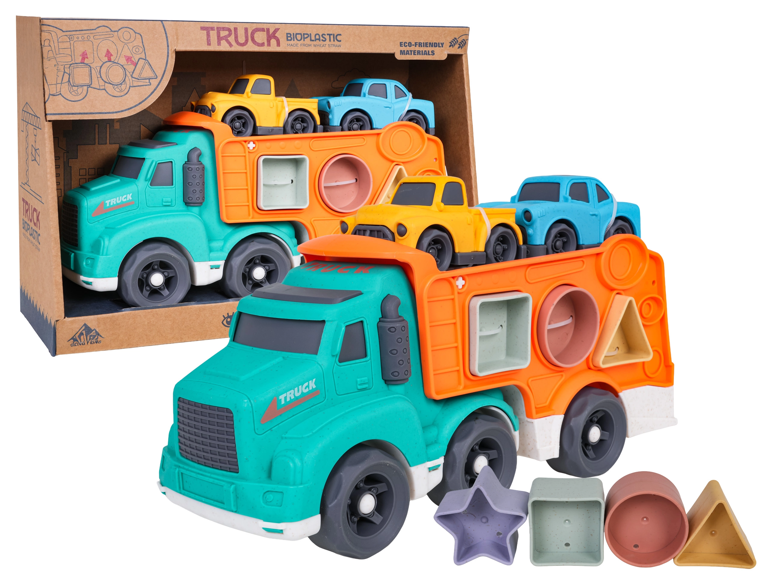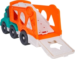 Šī eko rotaļlieta apvieno izklaidi ar mācīšanos: bērni attīsta sīko motoriku un formu atpazīšanu, pateicoties šķirotājam pārvadātāja sānos, vienlaikus izbaudot radošu braukšanu ar divām mašīnītēm. Izturīgs bioplasts, noapaļotas formas un košas krāsas nodrošina drošas un pievilcīgas rotaļas.