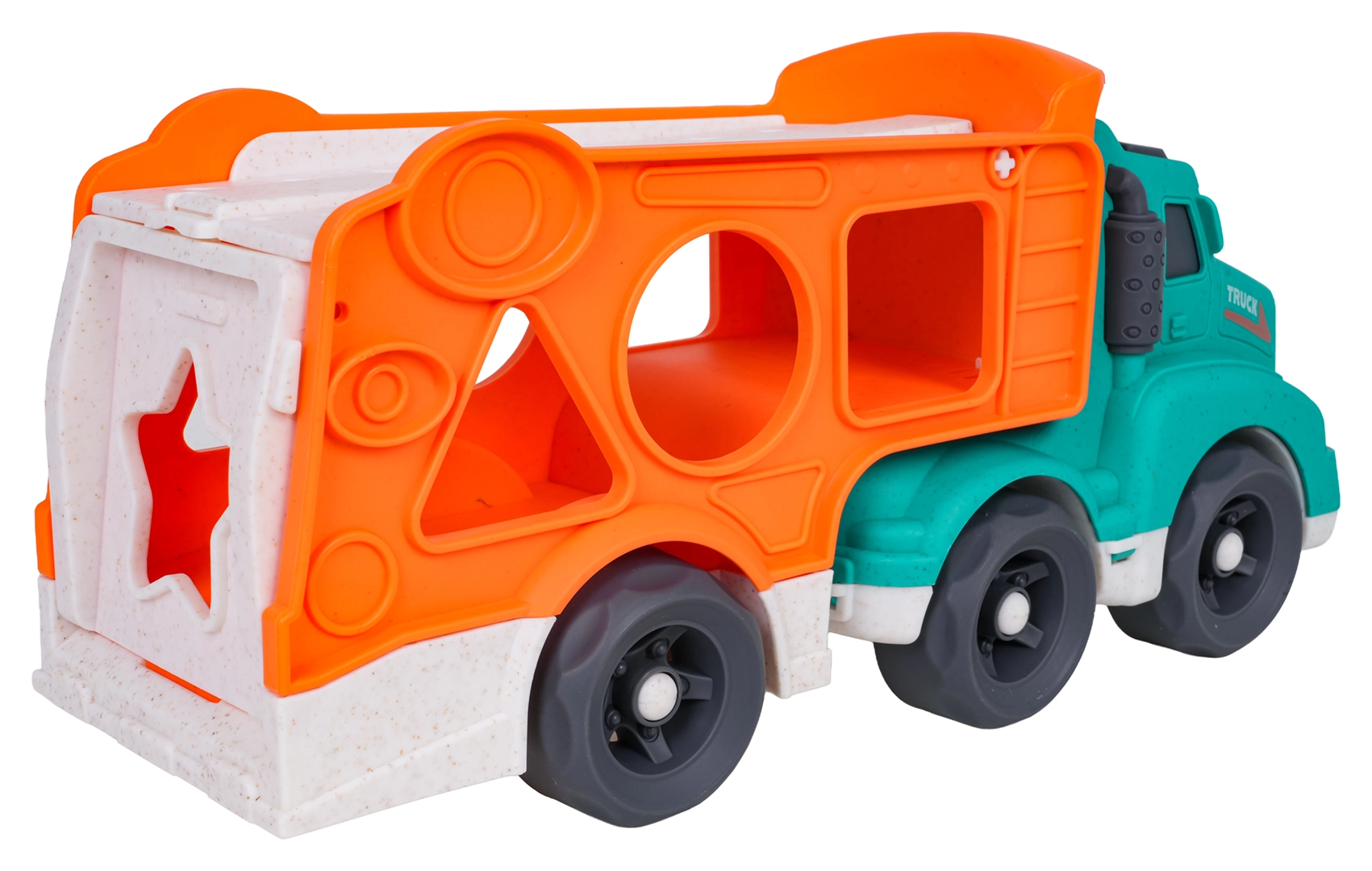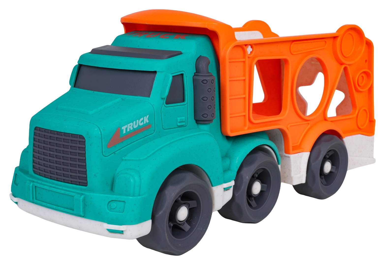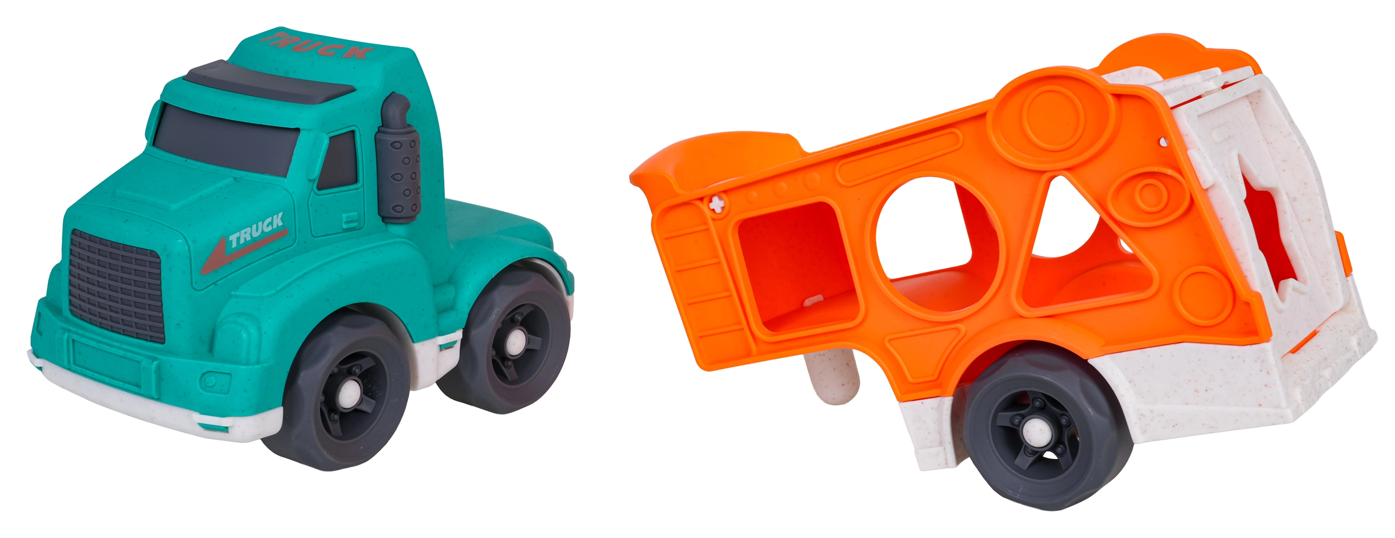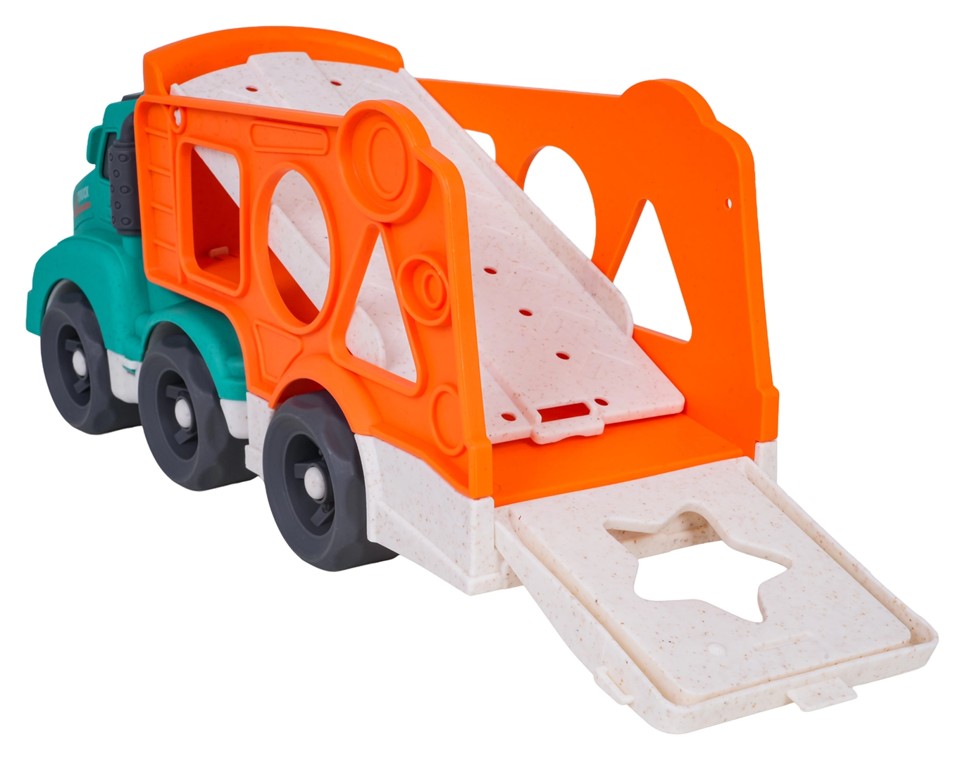 Šī eko rotaļlieta apvieno izklaidi ar mācīšanos: bērni attīsta sīko motoriku un formu atpazīšanu, pateicoties šķirotājam pārvadātāja sānos, vienlaikus izbaudot radošu braukšanu ar divām mašīnītēm. Izturīgs bioplasts, noapaļotas formas un košas krāsas nodrošina drošas un pievilcīgas rotaļas.