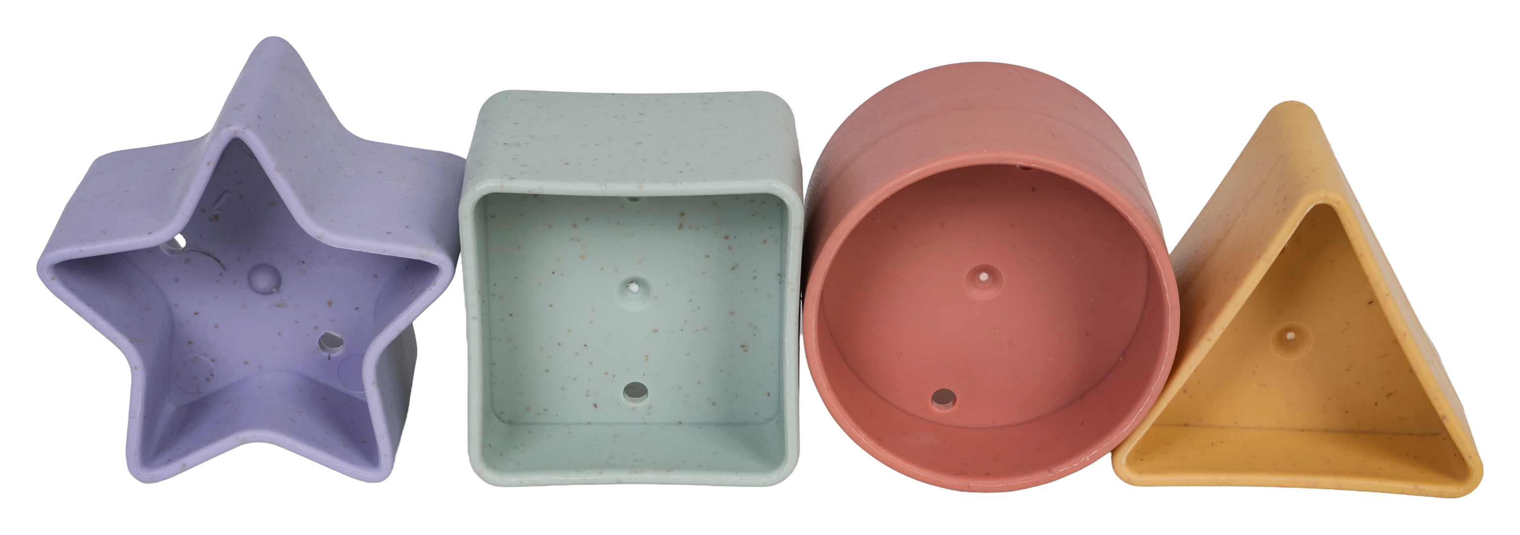 Atveres zvaigznei, riņķim, kvadrātam un trīsstūrim trenē formu atpazīšanu, krāsas un koordināciju. Ievieto un izņem – izklaidei uz ilgu laiku.
