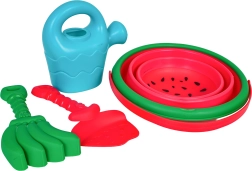 Komplekts veicina radošu un sensoru spēli, attīsta bērnu sīko motoriku un iztēli. Pateicoties kvalitatīviem materiāliem, tas ir piemērots ikdienas lietošanai pludmalē, smilšu kastē un dārzā.