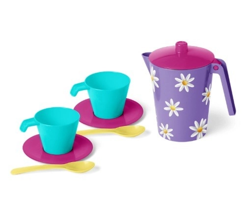 Mīlīgais bērnu kafijas komplekts iepriecinās ikvienu mazo pavāru. Tas ietver 7 daļas – kannīti ar IML grafiku, 2 tasītes, 2 apakštasītes un 2 karotītes. Izgatavots no drošiem materiāliem, kas paredzēti saskarei ar pārtiku, to var mazgāt trauku mazgājamajā mašīnā un lietot mikroviļņu krāsnī. Lieliski piemērots spēlēm ar vienaudžiem, attīsta iztēli, smalko motoriku un sociālās prasmes.