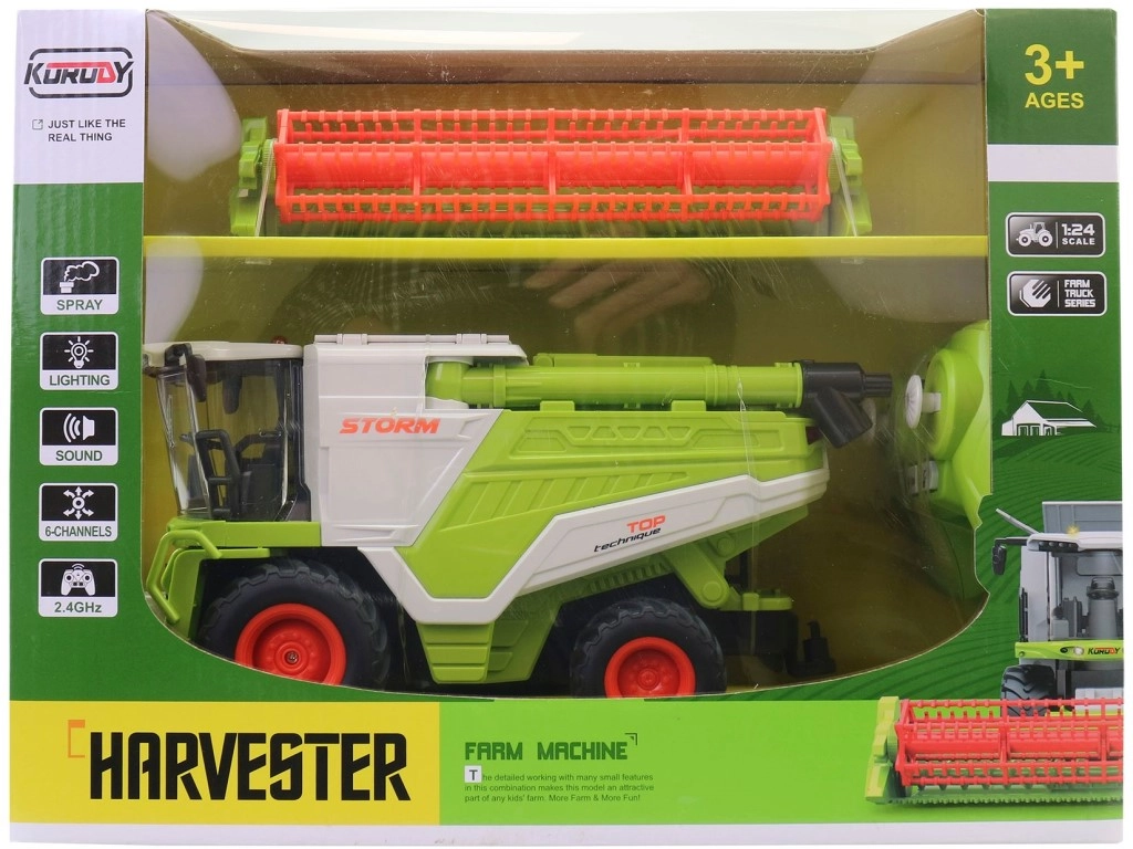 Šis bērnu tālvadāmais kombains ieness autentisku lauku saimniecības izklaidi jebkurā bērnistabā. Izturīga konstrukcija no kvalitatīvas plastmasas, detalizēta kabīne un koša pļaušanas galva veicina radošas spēles un sīko motoriku.