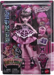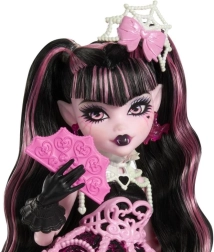 Sviniet monstru dzimšanas dienu ar lelli Monster High Draculaura – Biedējoši saldā ballīte. Stilīga gotu princese rozā–melnā tērpā ar daudz aksesuāriem rotaļām un ekspozīcijai sniedz radošu izklaidi, pozu artikulāciju un unikālu dizainu, ko iedvesmo 1600. dzimšanas dienas svinības.