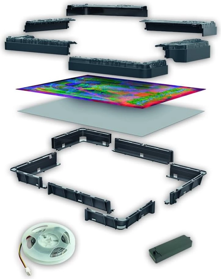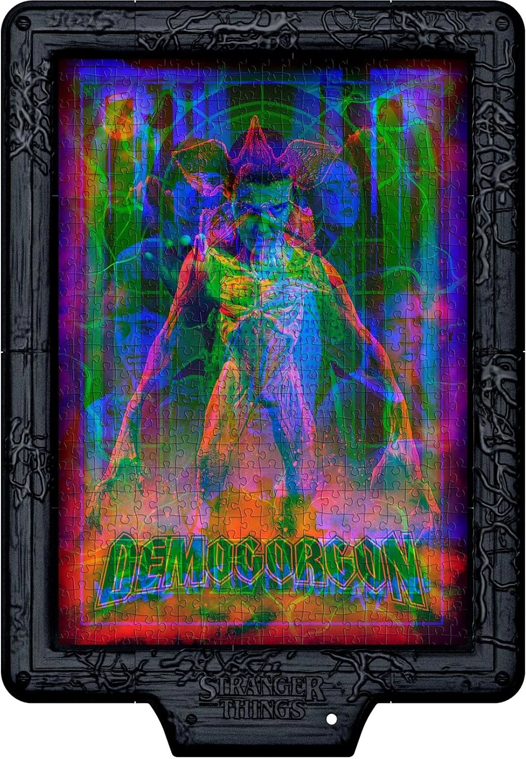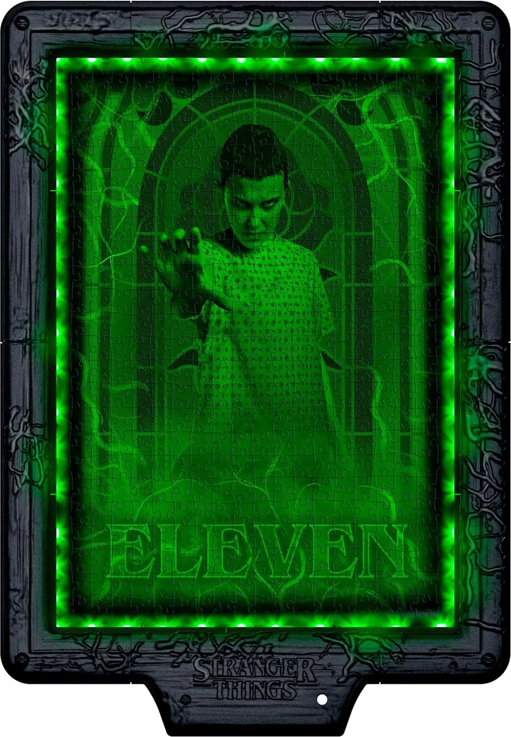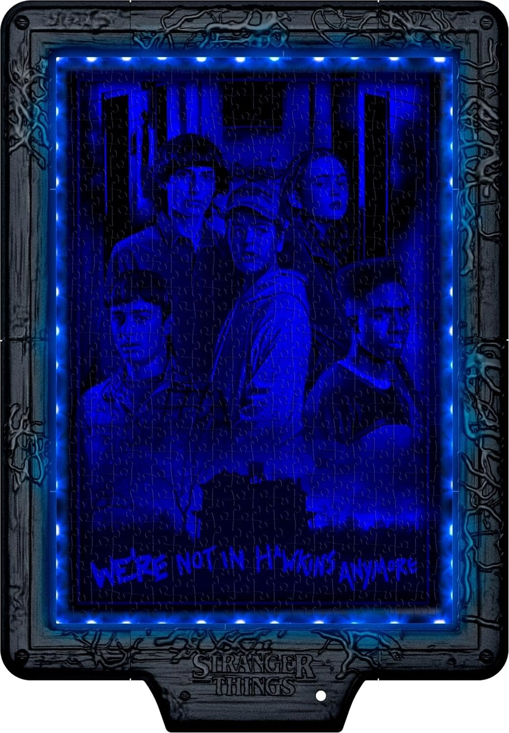 Šī unikālā puzle ienes seriāla STRANGER THINGS kino noskaņu jūsu mājās. Pateicoties integrētam elektroniskajam modulim un RGB LED lentai, attēls iedegoties pārvēršas – katra LED krāsa atklāj citu Demogorgona medību ainas slāni. Parastā apgaismojumā redzēsiet kompozīciju ar trīs krāsu līmeņu pārklājumu, bet tumsā katrs tonis izcels jaunus detaļu slāņus.